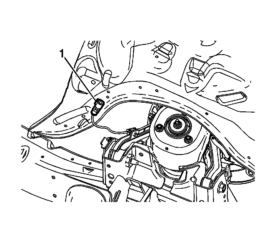 1. Within the engine compartment, disconnect the wheel speed sensor electrical connector (1).