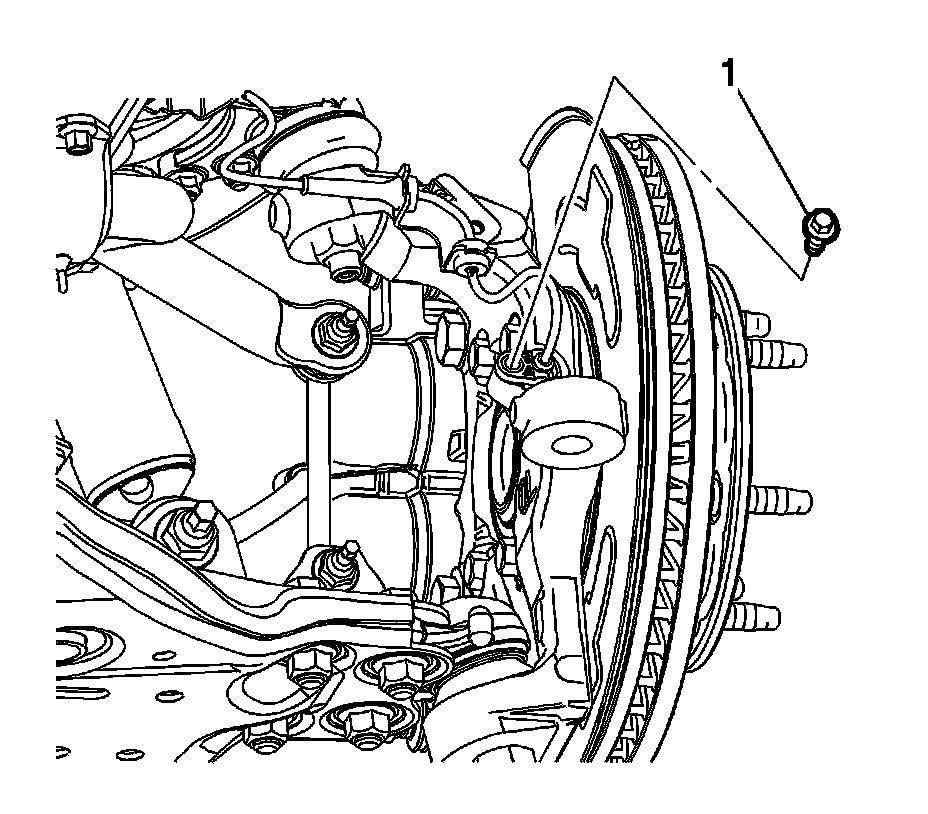 3. Install the wheel speed sensor harness bracket bolt (1) and tighten to 9 Nm (80 lb in).