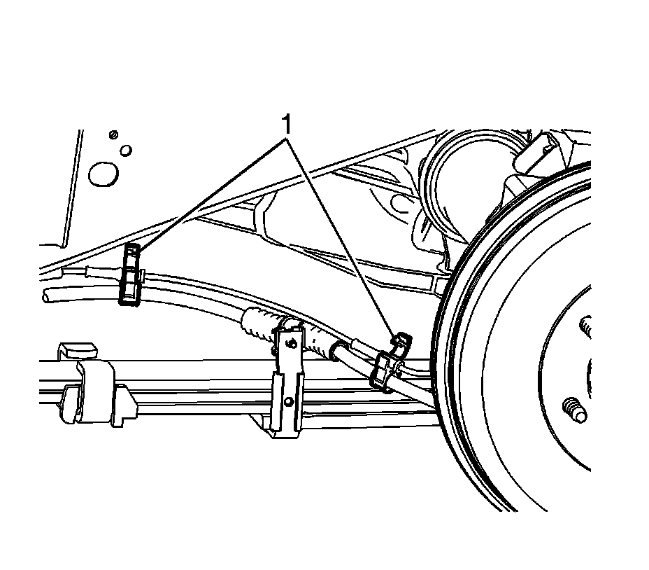 4. Position the wheel speed sensor harness to the retainers (1) on the rear park brake cable.