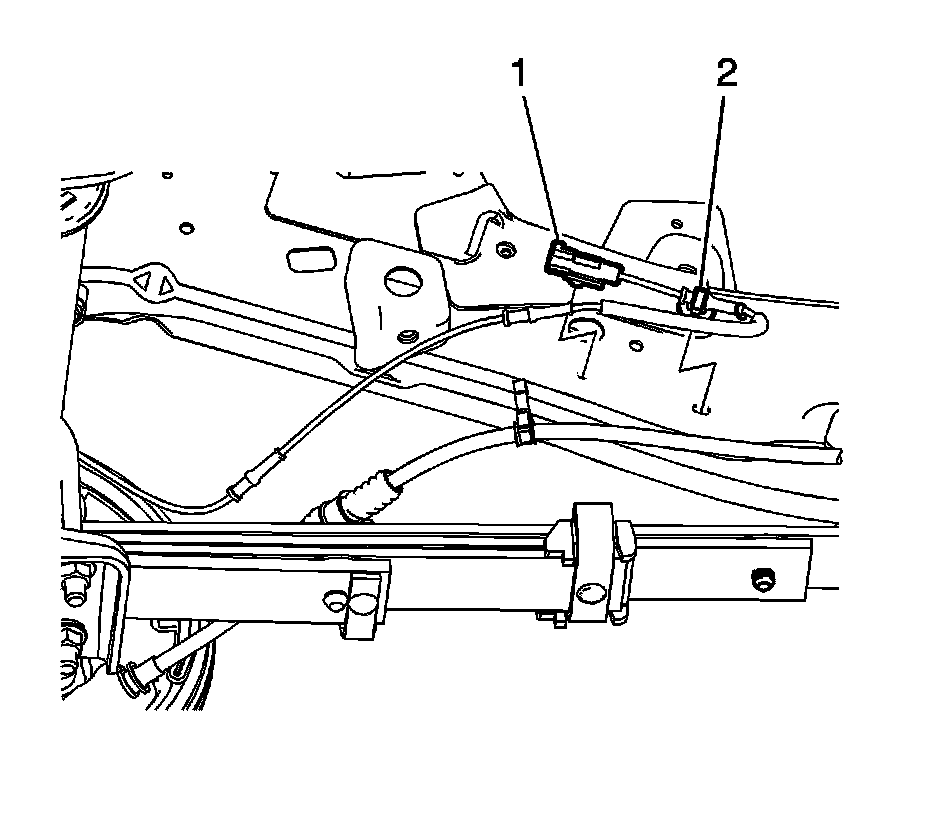 4. Release the wheel speed sensor harness retainers (1) on the rear park brake cable.