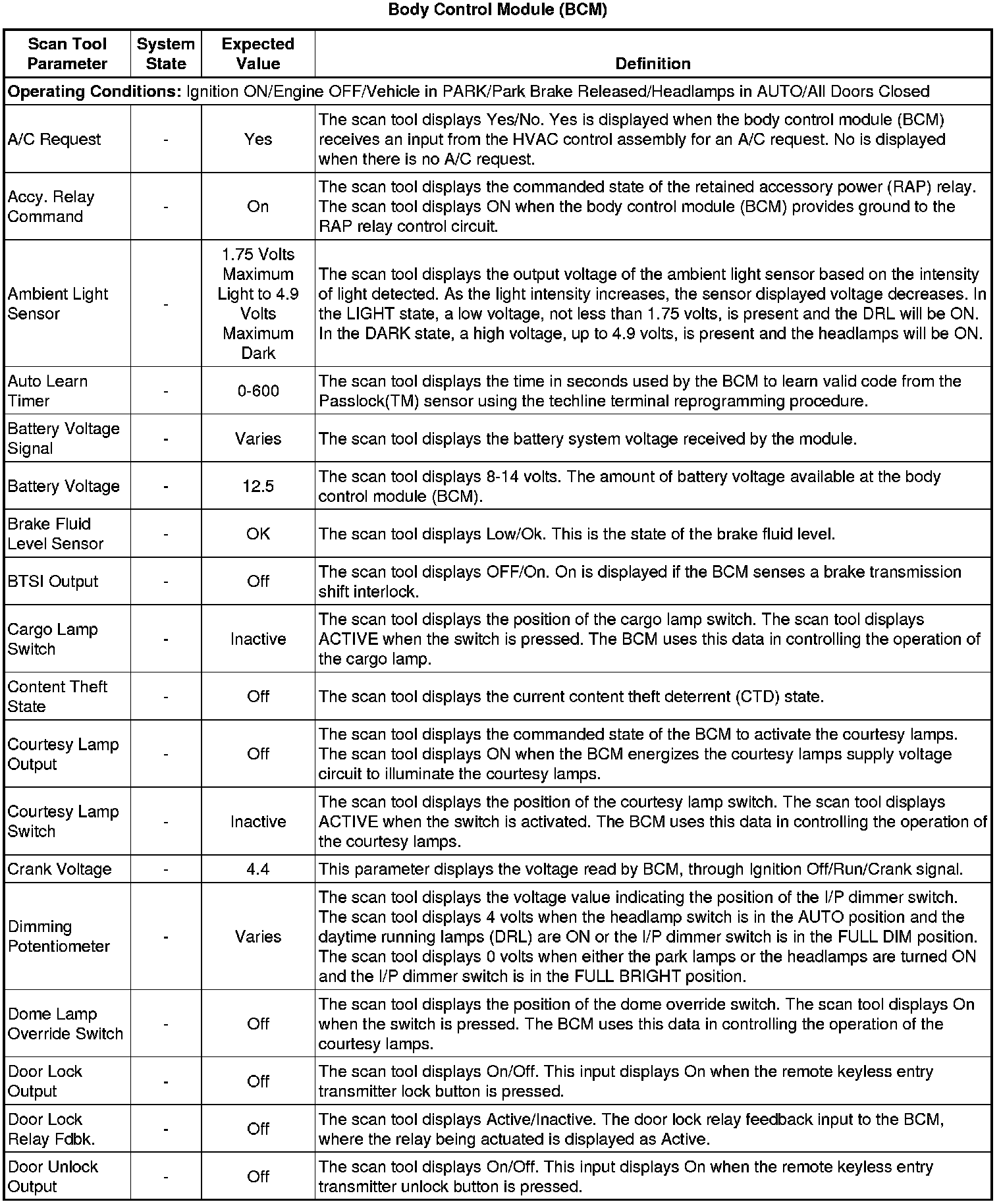 Body Control Module Scan Tool Information