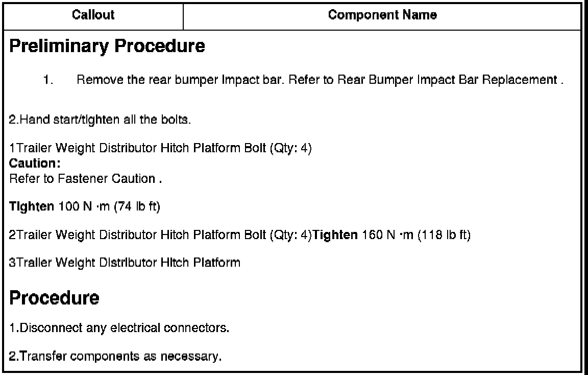 2Trailer Weight Distributor Hitch Platform Bolt (Qty: 4)Tighten 160 N �m (118 lb ft)
