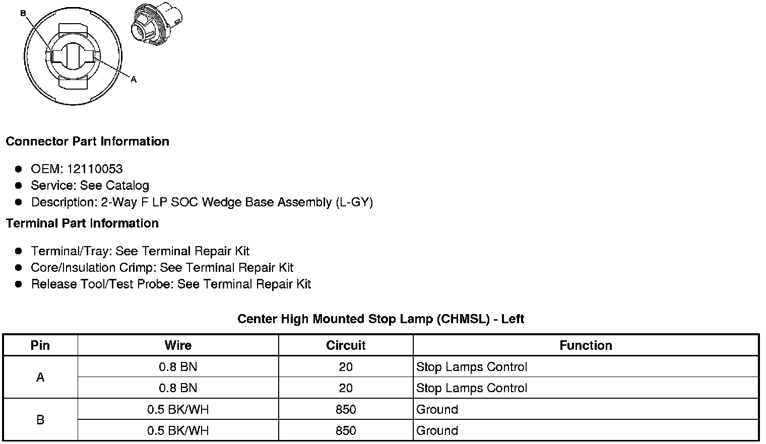 Center High Mounted Stop Lamp (CHMSL) - Left