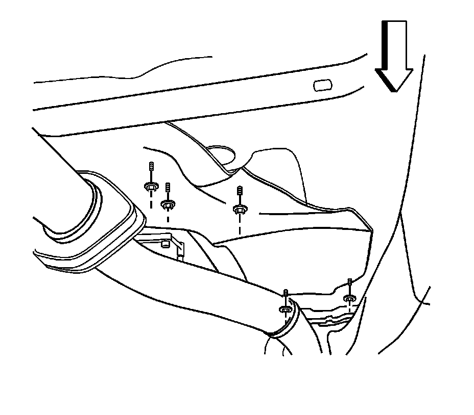 2. Install the 5 nuts securing the heat shield to the floor panel. Tighten the heat shield nuts to 9 Nm (80 lb in).