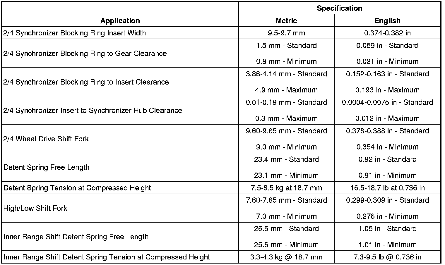 Transfer Case Mechanical Specifications