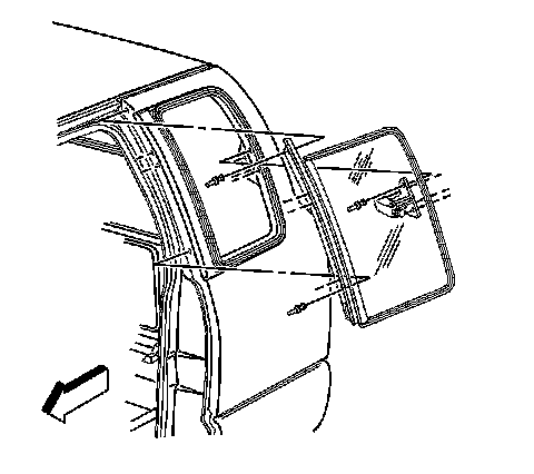 2. Using the J 34940 , or equivalent, install the rivets in order to retain the window assembly to the vehicle.