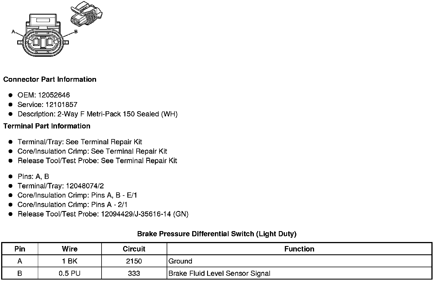 Brake Pressure Differential Switch (Light Duty)
