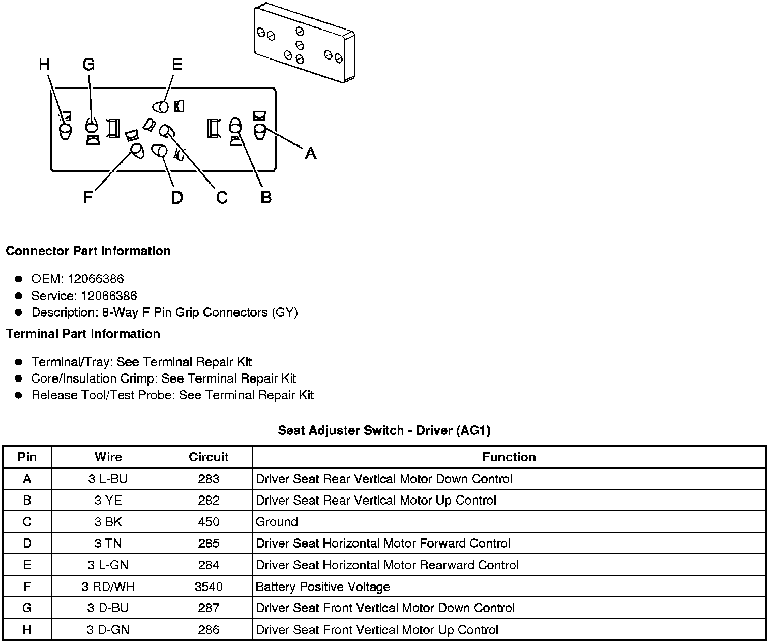 Seat Adjuster Switch - Driver (AG1)