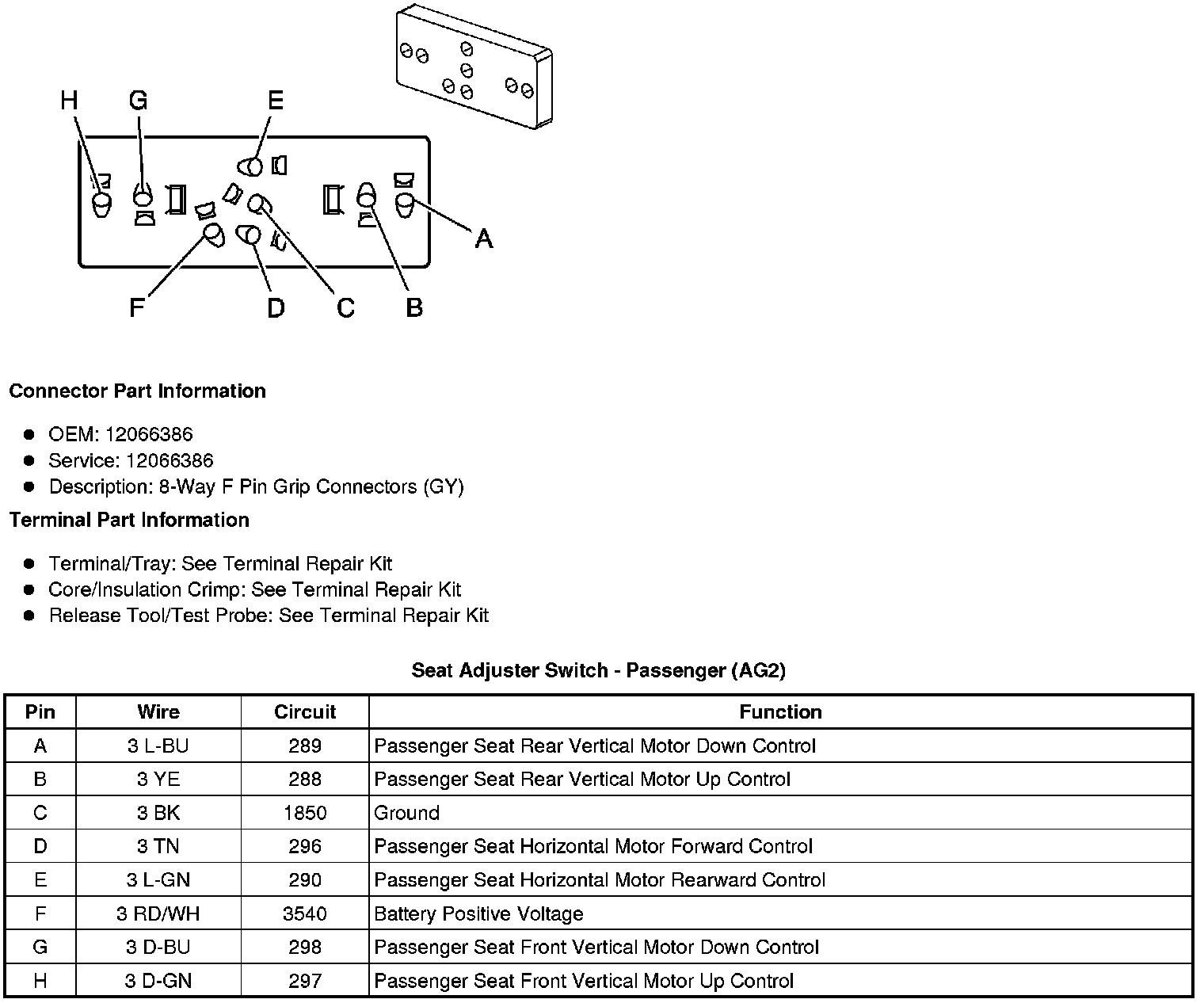 Seat Adjuster Switch - Passenger (AG2)
