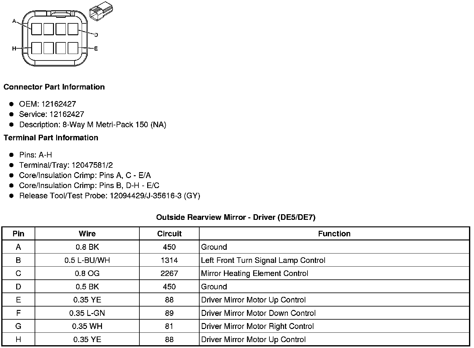 Outside Rearview Mirror - Driver (DE5/DE7)