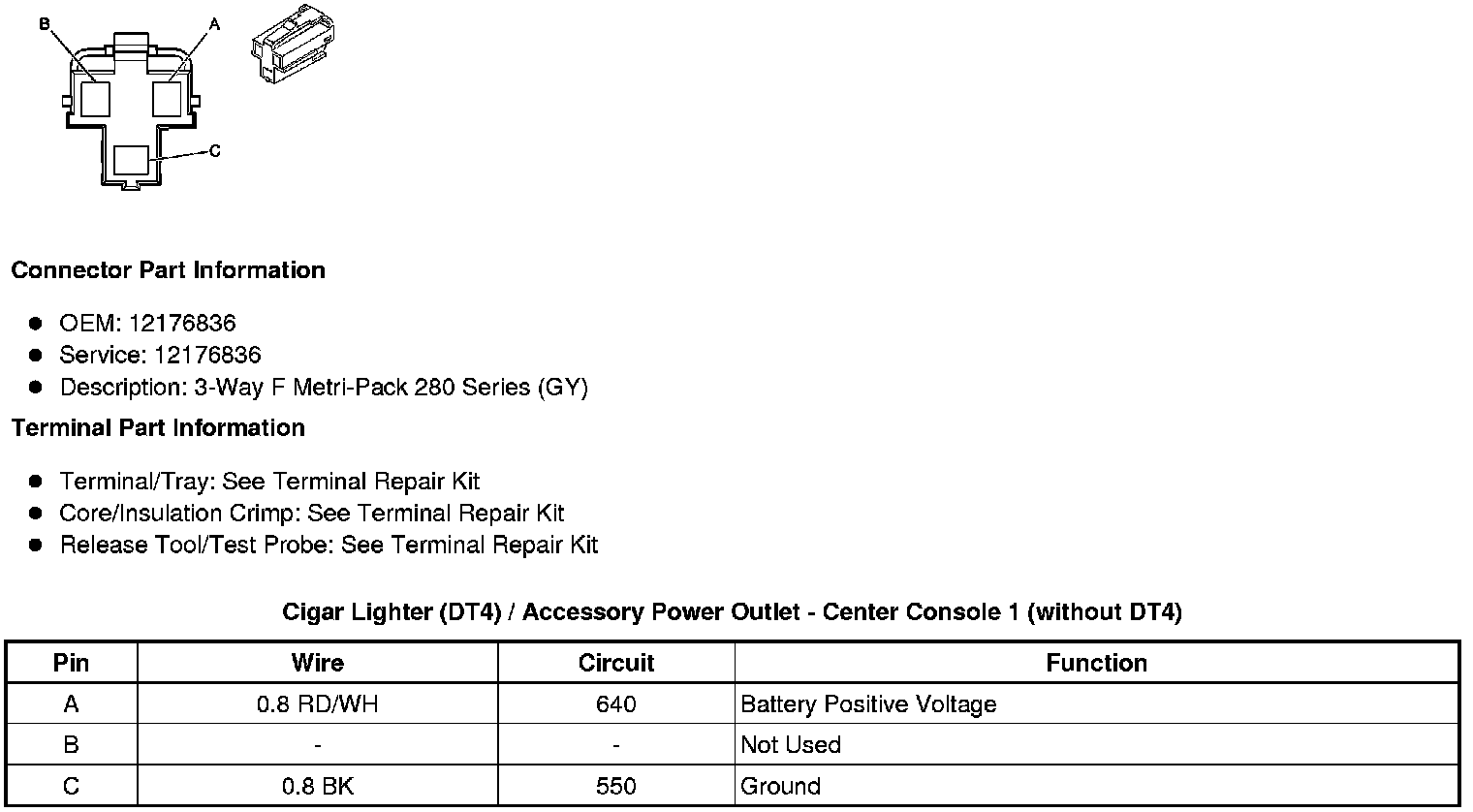 Cigar Lighter (DT4) / Accessory Power Outlet - Center Console 1 (without DT4)