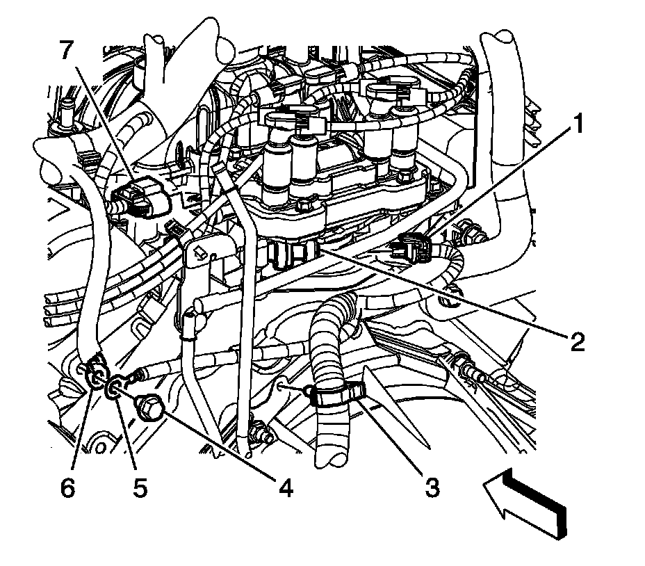 4. Connect engine wiring harness electrical connector (7) to the ignition coil.