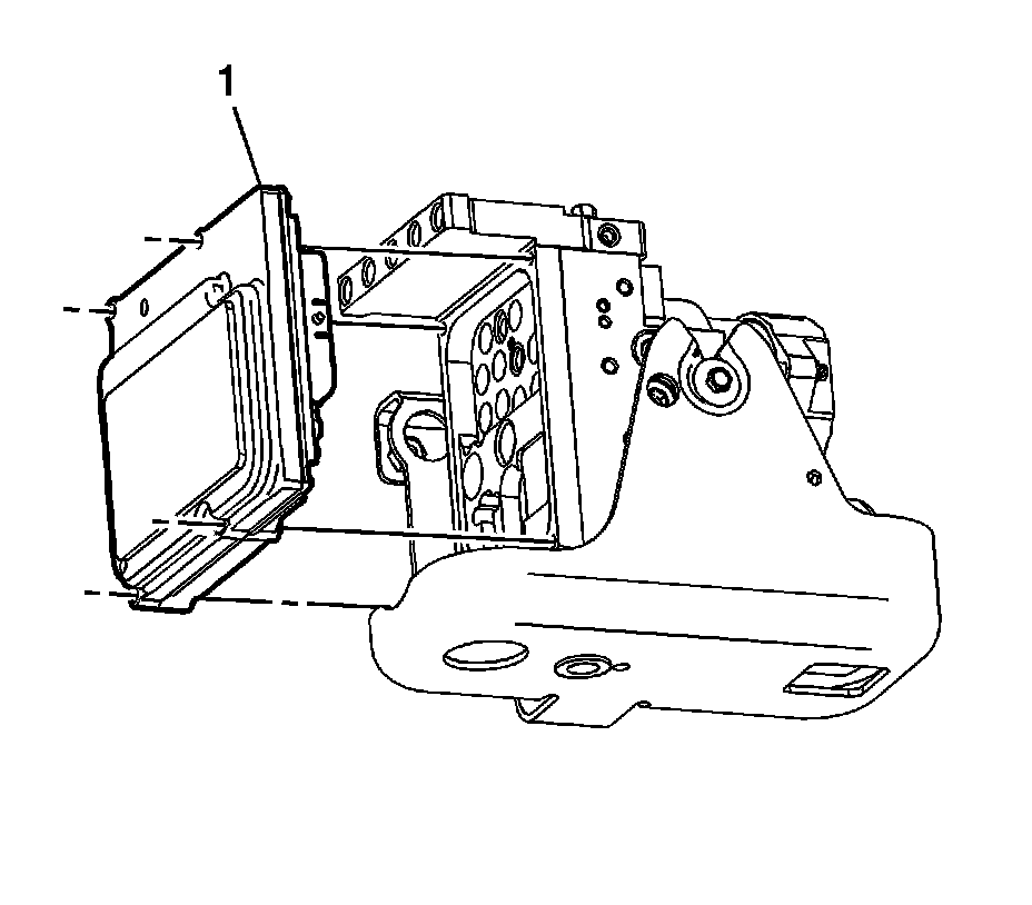 9. Using the loosened EBCM bolts as a guide, carefully pull the EBCM (1) evenly away from the BPMV to release the electrical connectors.
