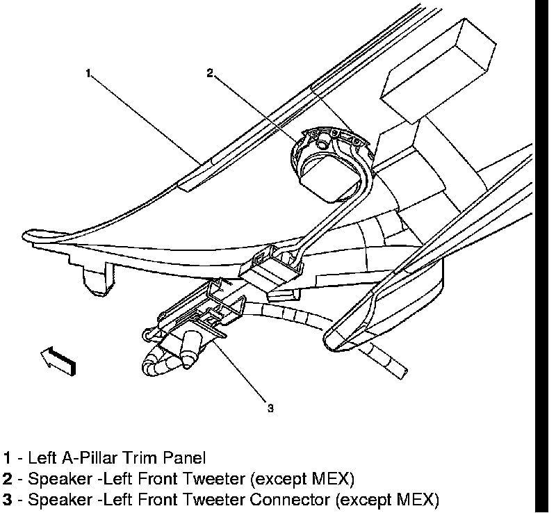 3 - Speaker -Left Front Tweeter Connector (except MEX)