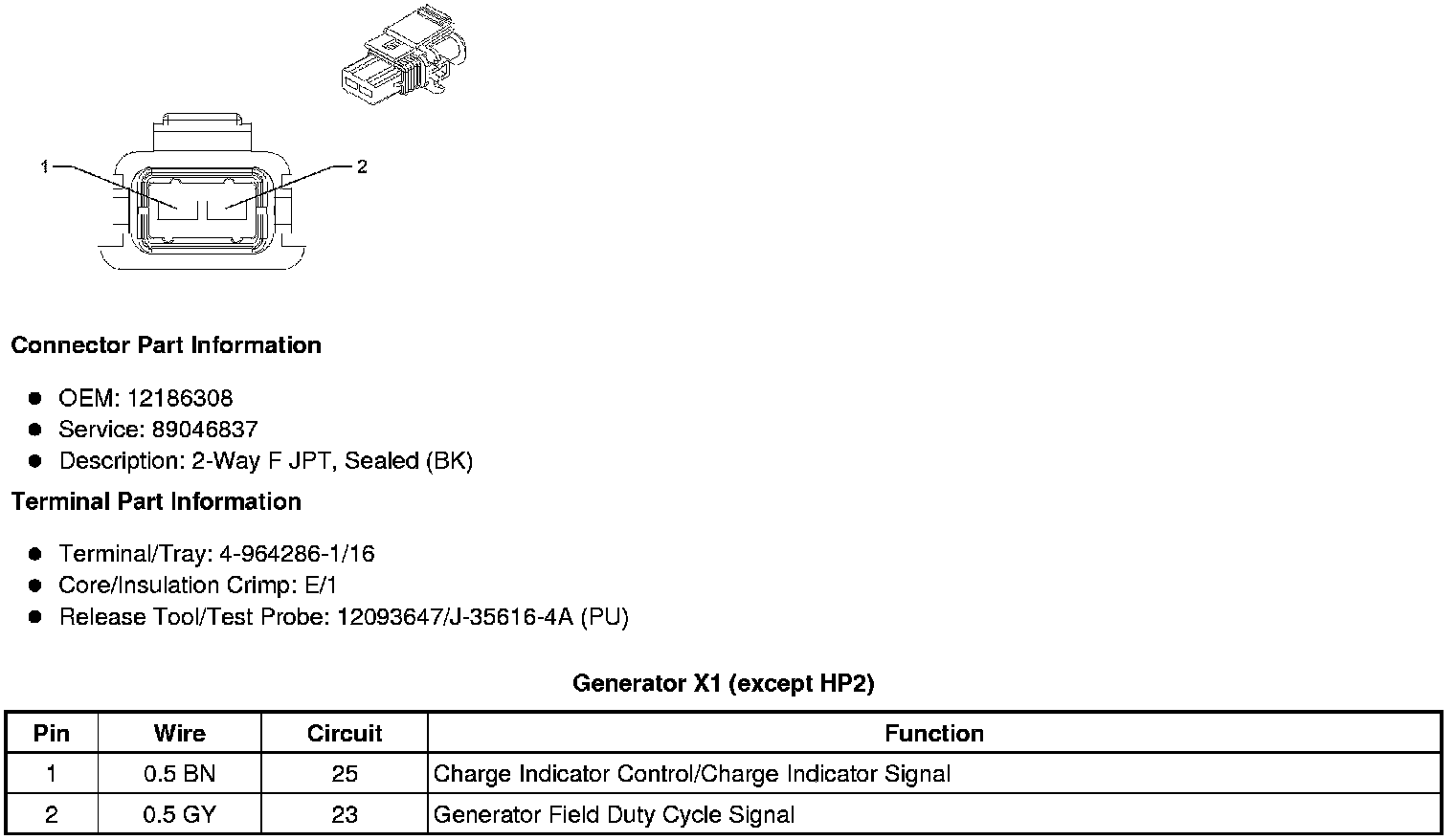 Generator X1 (except HP2)