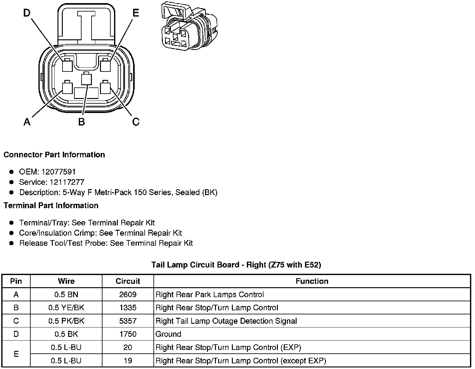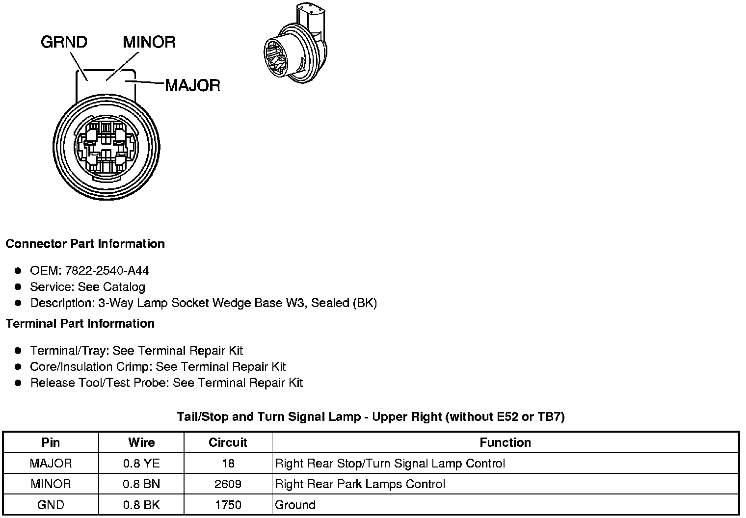 Tail/Stop and Turn Signal Lamp - Lower Right (without E52 or TB7)