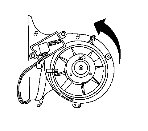 2. Install the blower motor to the heater/ventilation module. Turn the blower assembly clockwise until the retaining tab locks into place.