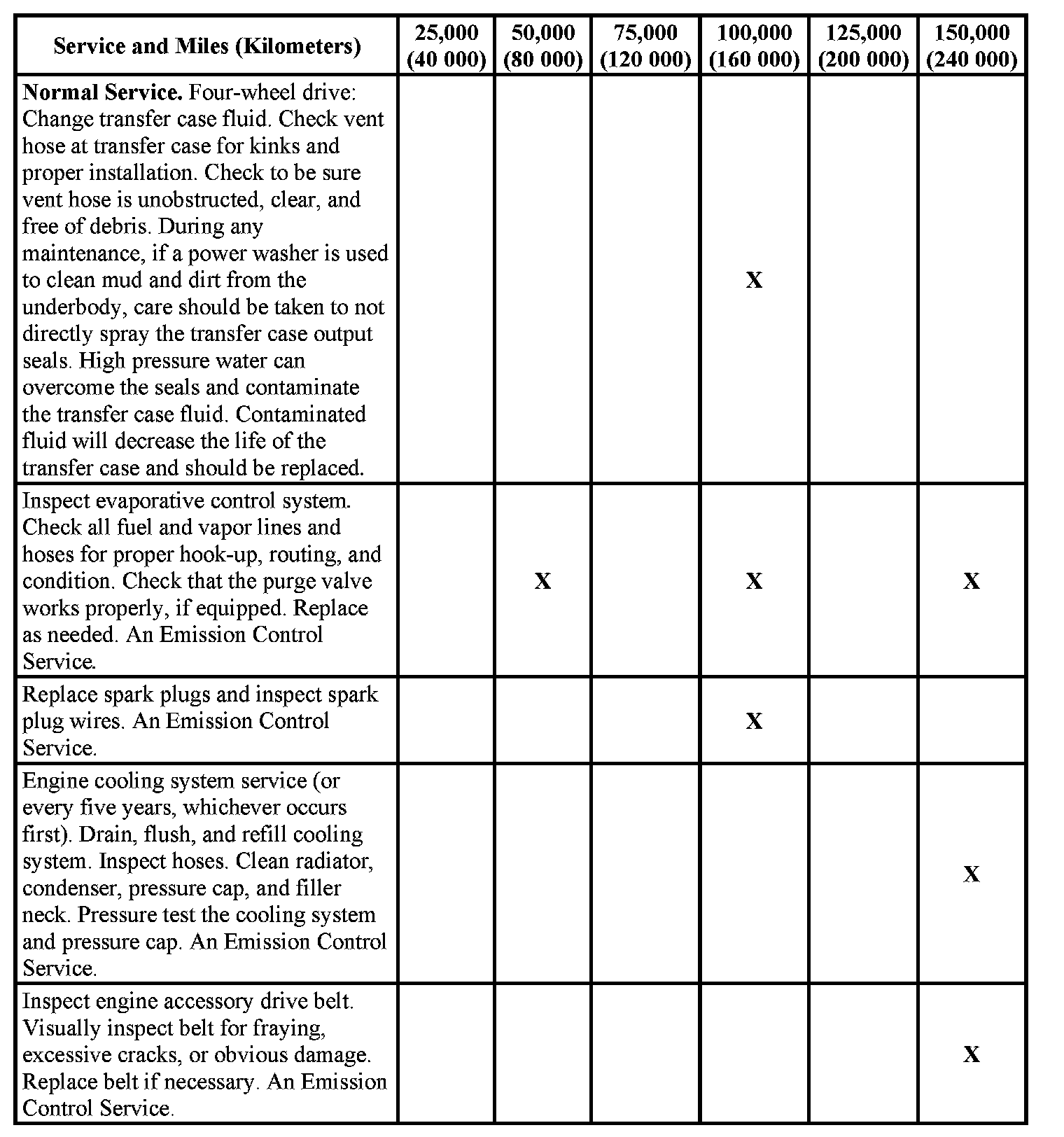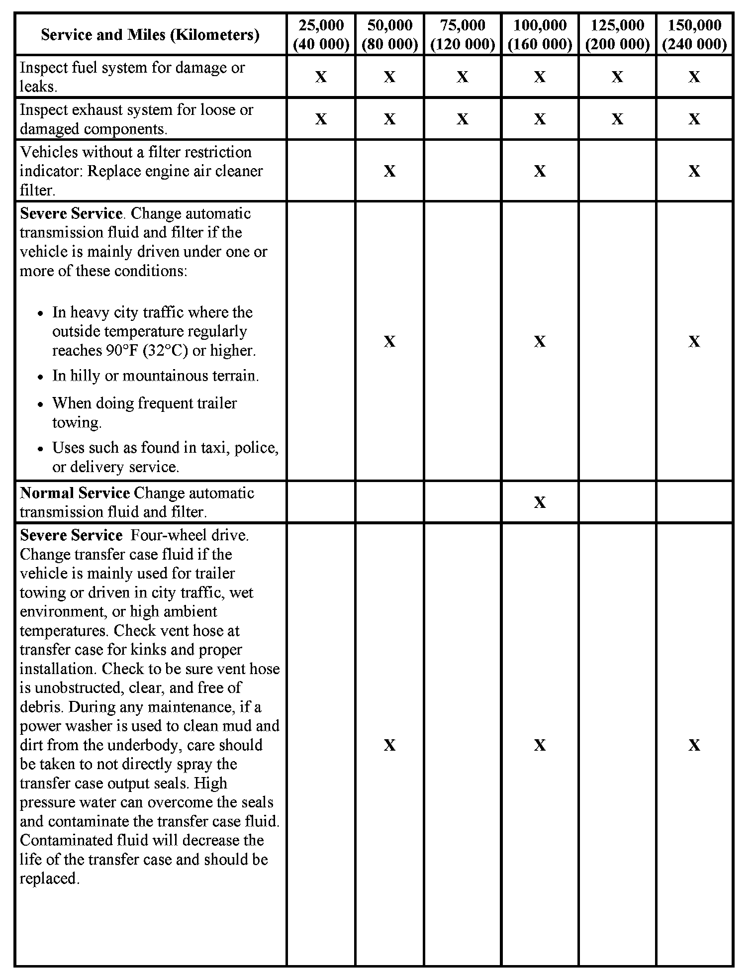service (I or II) after the indicated miles (kilometers) shown for each item.