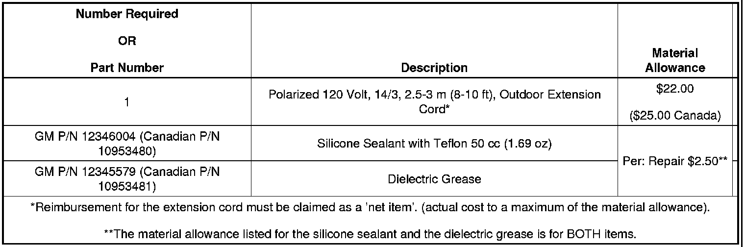 5. Apply dielectric grease to the electrical contacts of the heater cord receptacle and the extension cord plug to prevent corrosion. Use GM P/N 12345579 (in Canada, use P/N 10953481) or an equivalent.