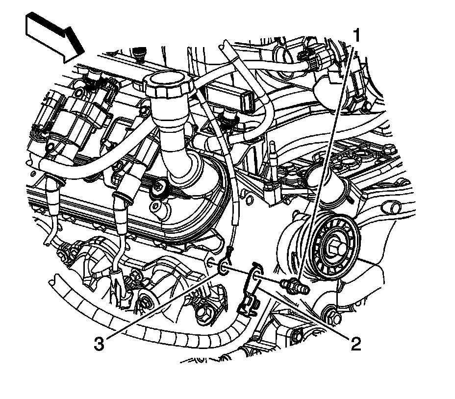 6. Install the negative battery cable stud (1) to the front of the right cylinder head.