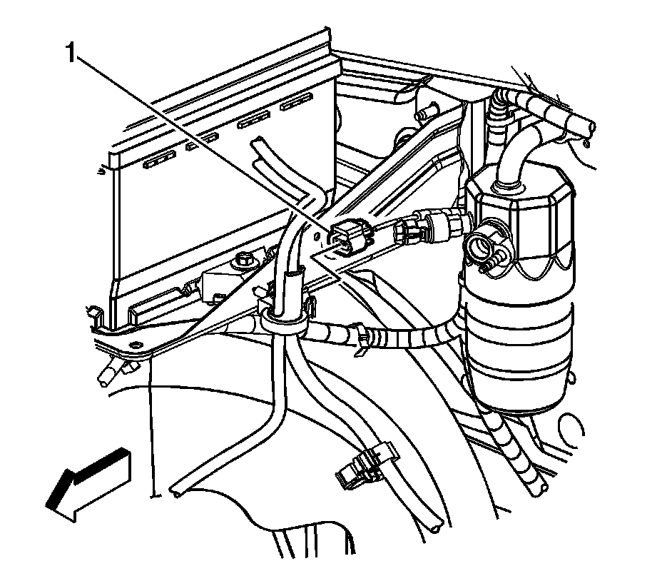 7. Install the negative battery cable clip (1) to the right wheelhouse liner.