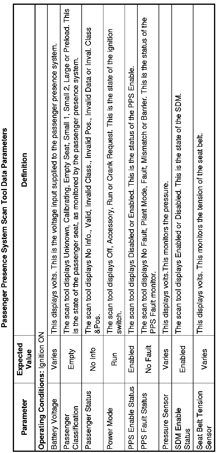Inflatable Restraint Passenger Presence System Scan Tool Information