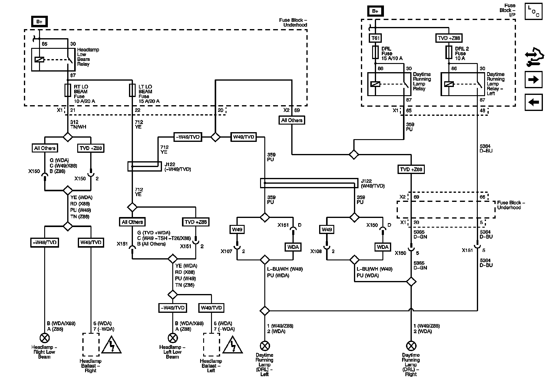 DRL, DRL 2, LT LO BEAM, and RT LO BEAM Fuses
