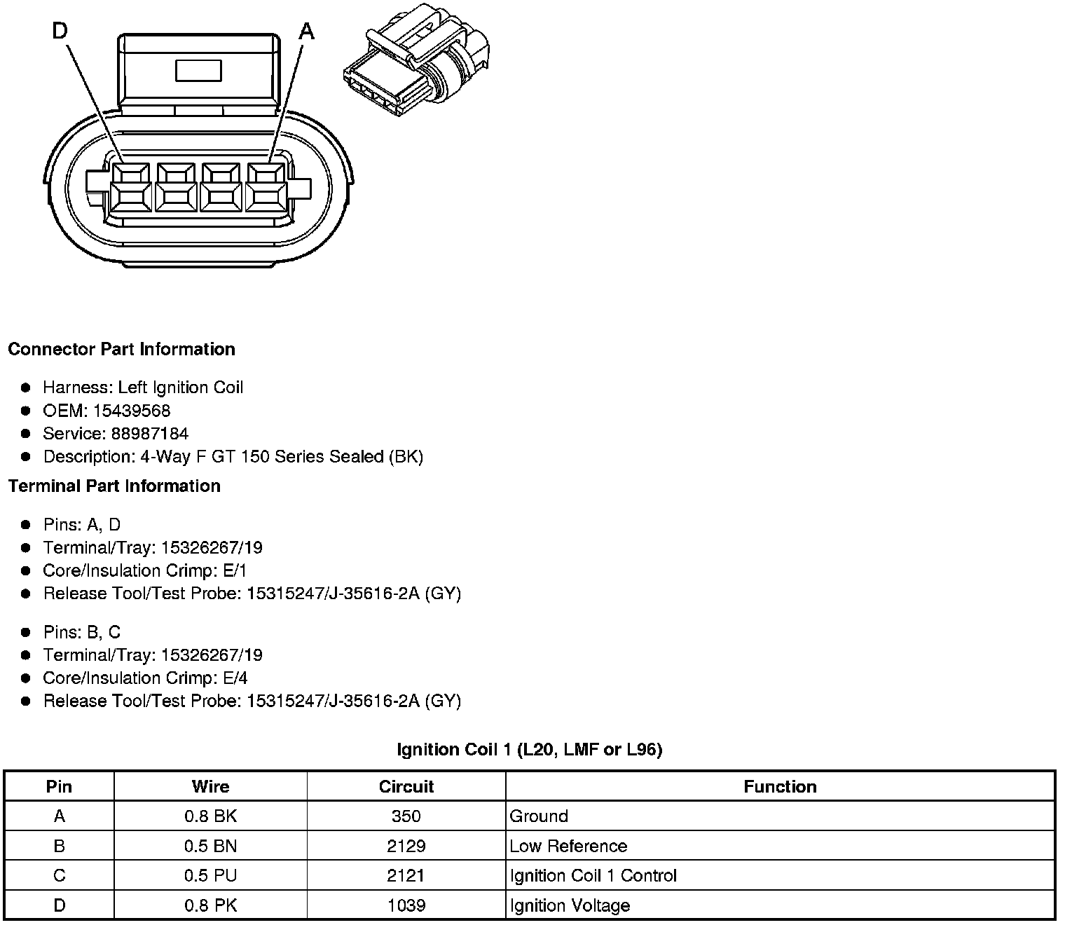 Ignition Coil 1 (L20, LMF or L96)