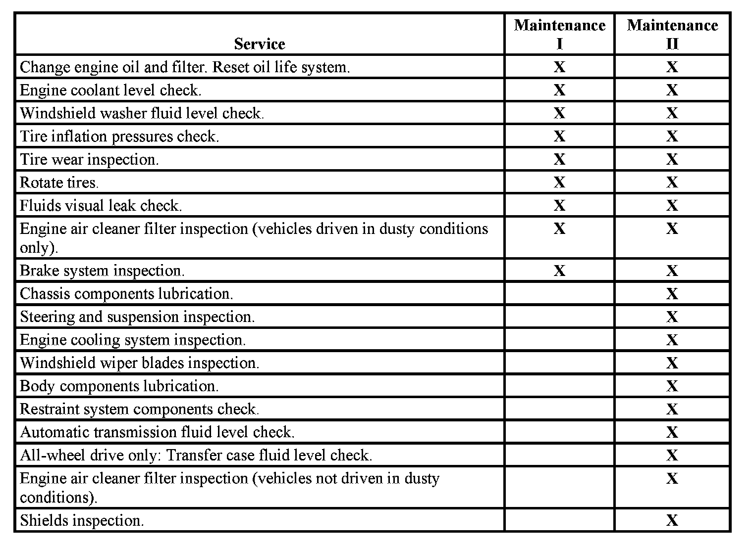 When the Change Engine Oil Soon message displays, certain services, checks, and inspections are required. The services described for Maintenance I should be performed at every engine oil change. The services described for Maintenance II should be performed when: