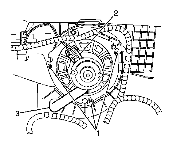 4. Remove the blower motor retaining screws (1).