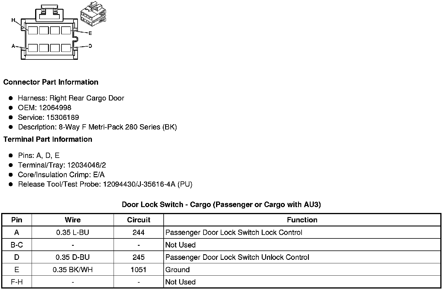Door Lock Switch - Cargo (Passenger or Cargo with AU3)