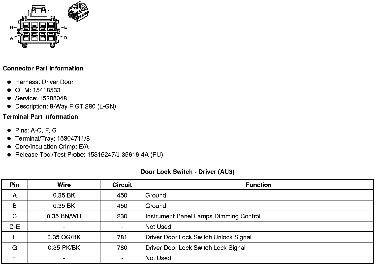 Door Lock Switch - Driver (AU3)