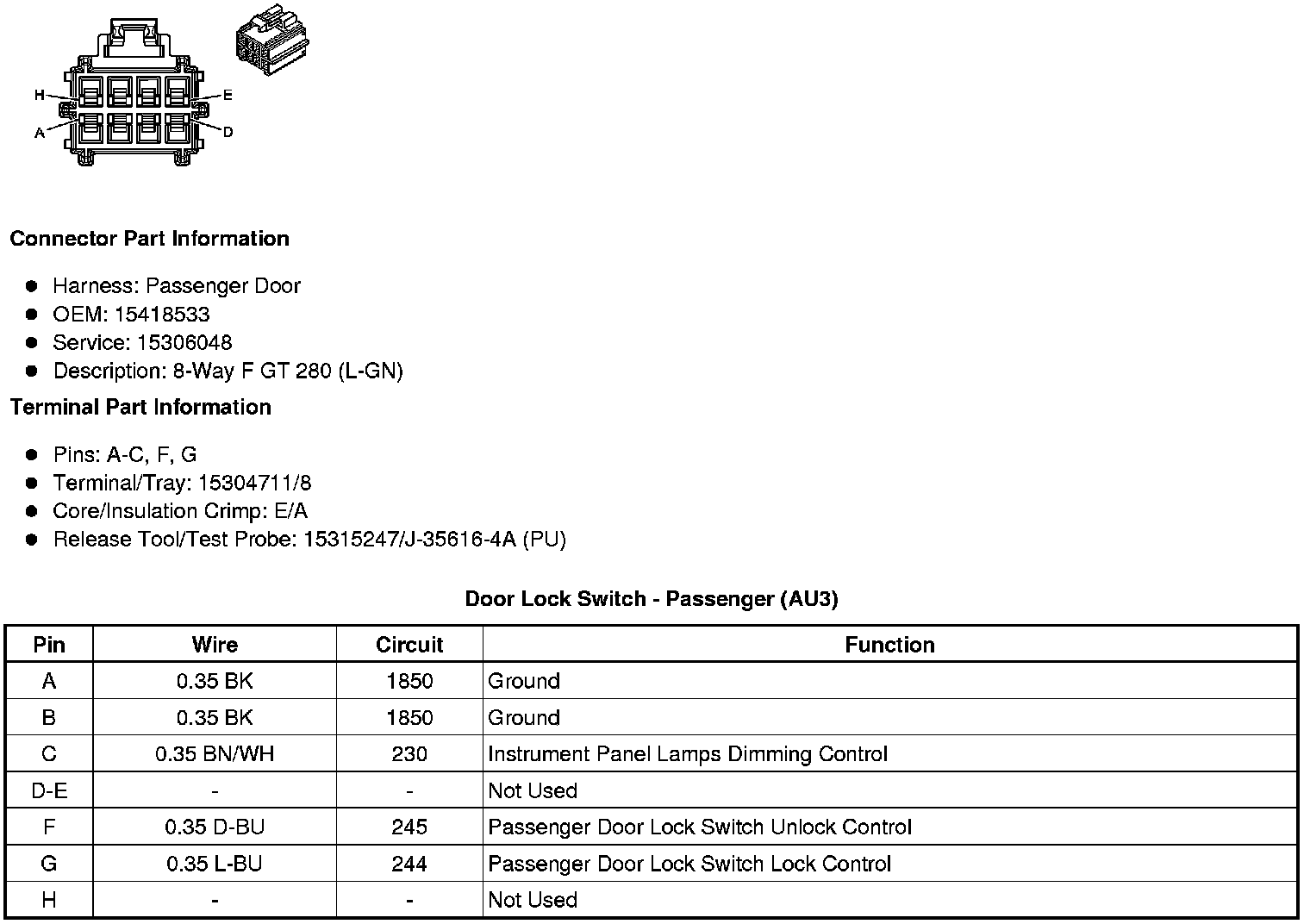 Door Lock Switch - Passenger (AU3)