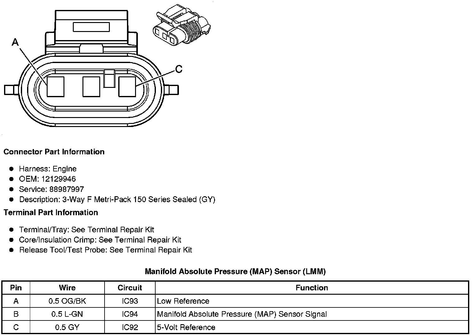Manifold Absolute Pressure (MAP) Sensor (LU3, L20, LMF or L96)
