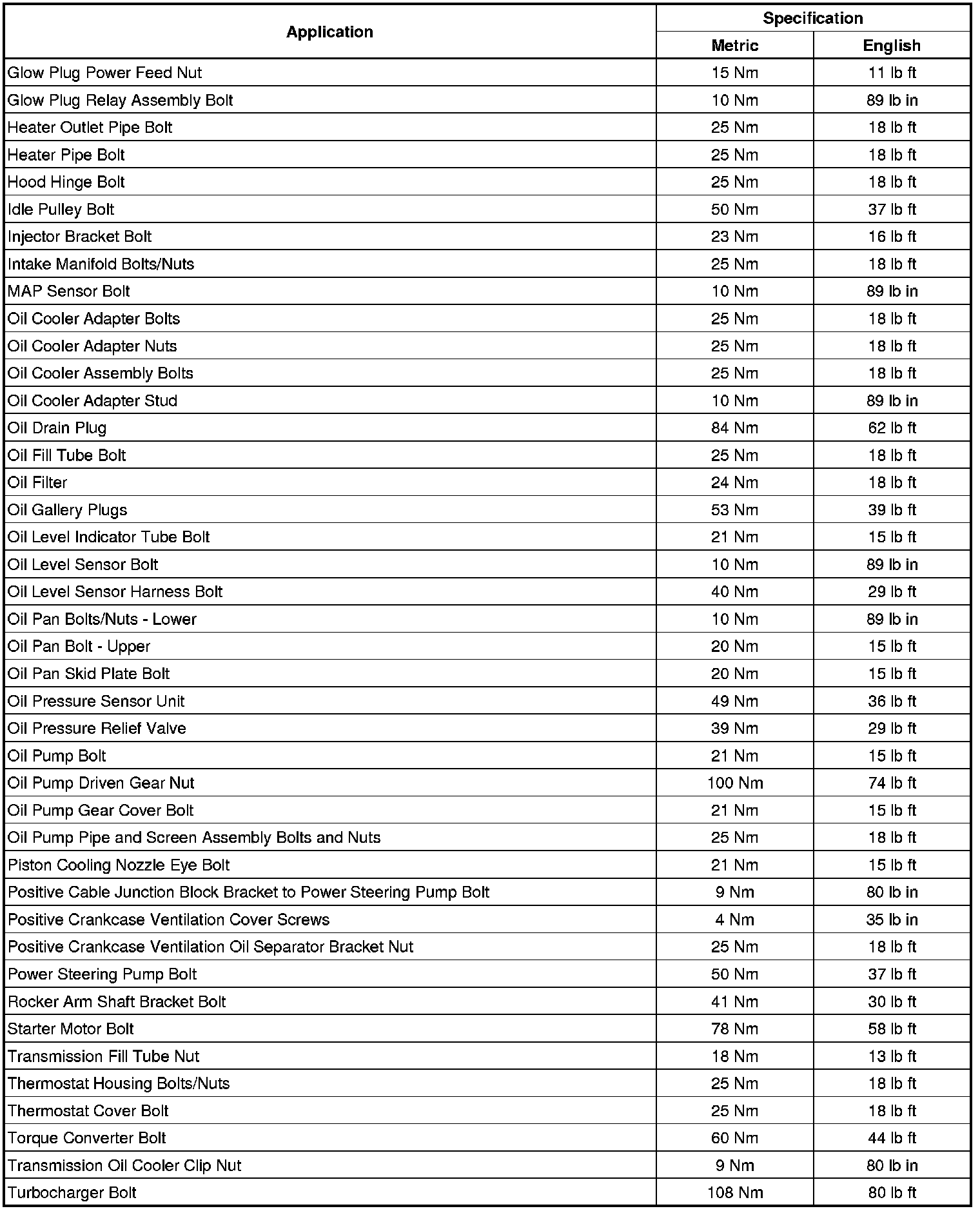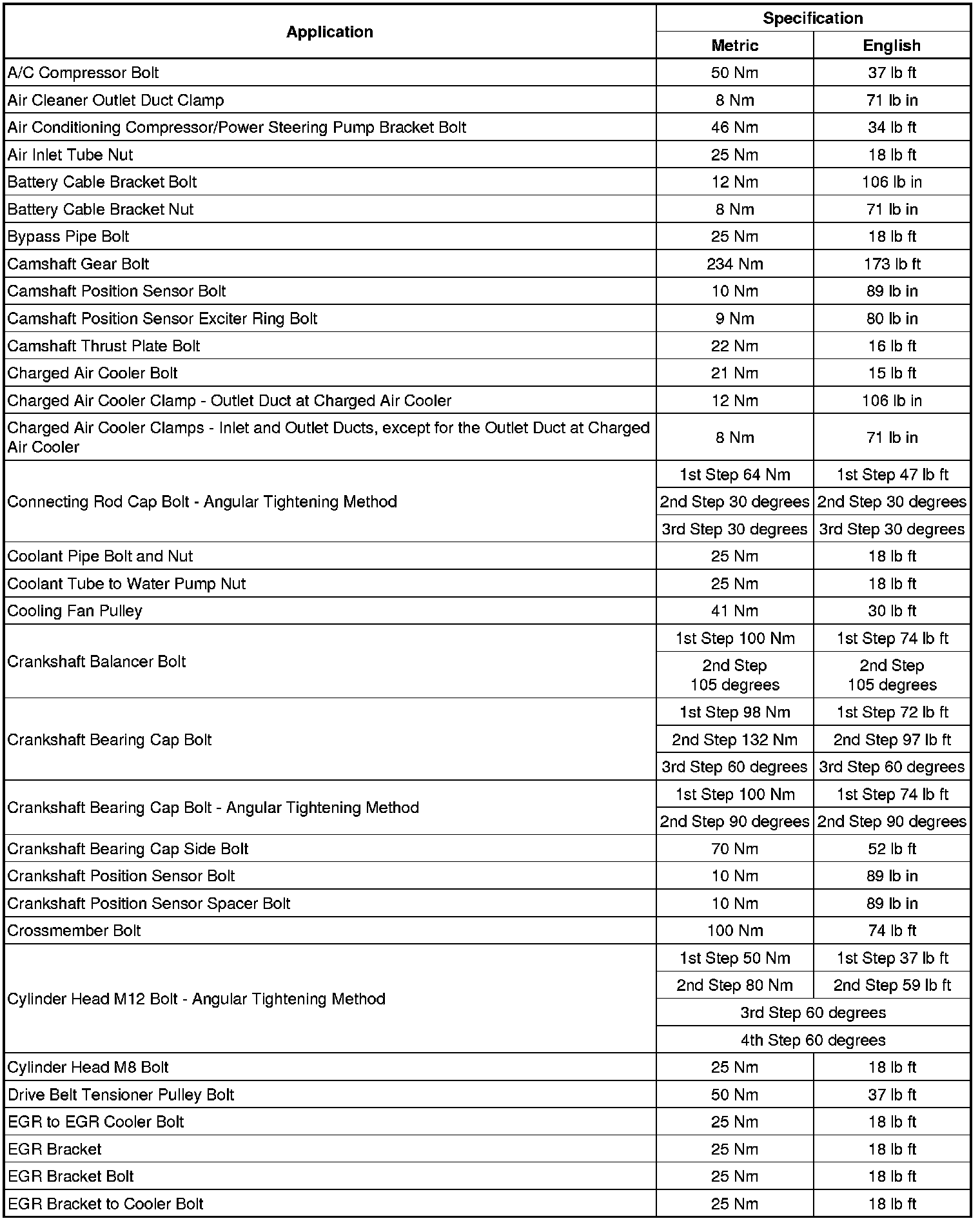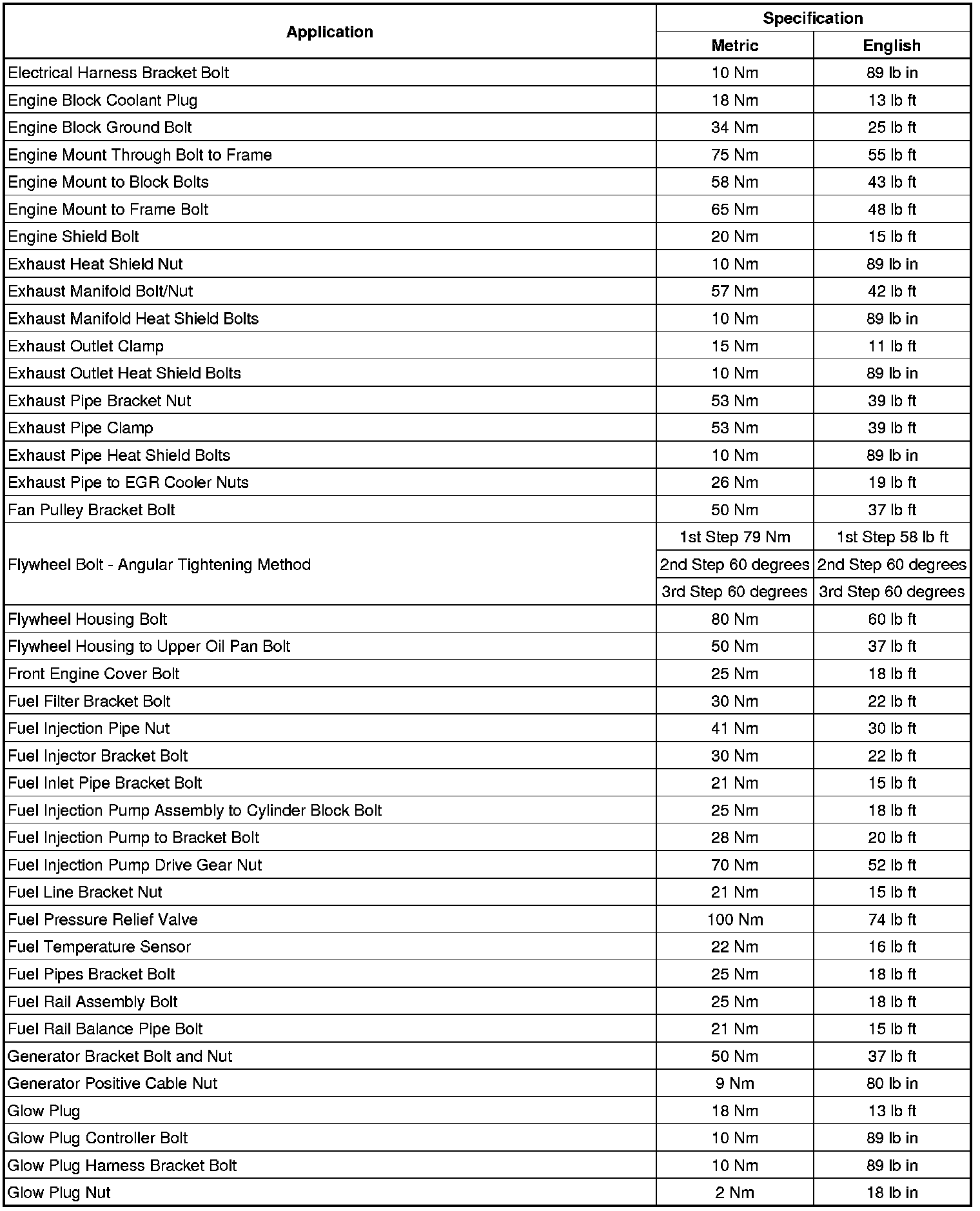 Fastener Tightening Specifications