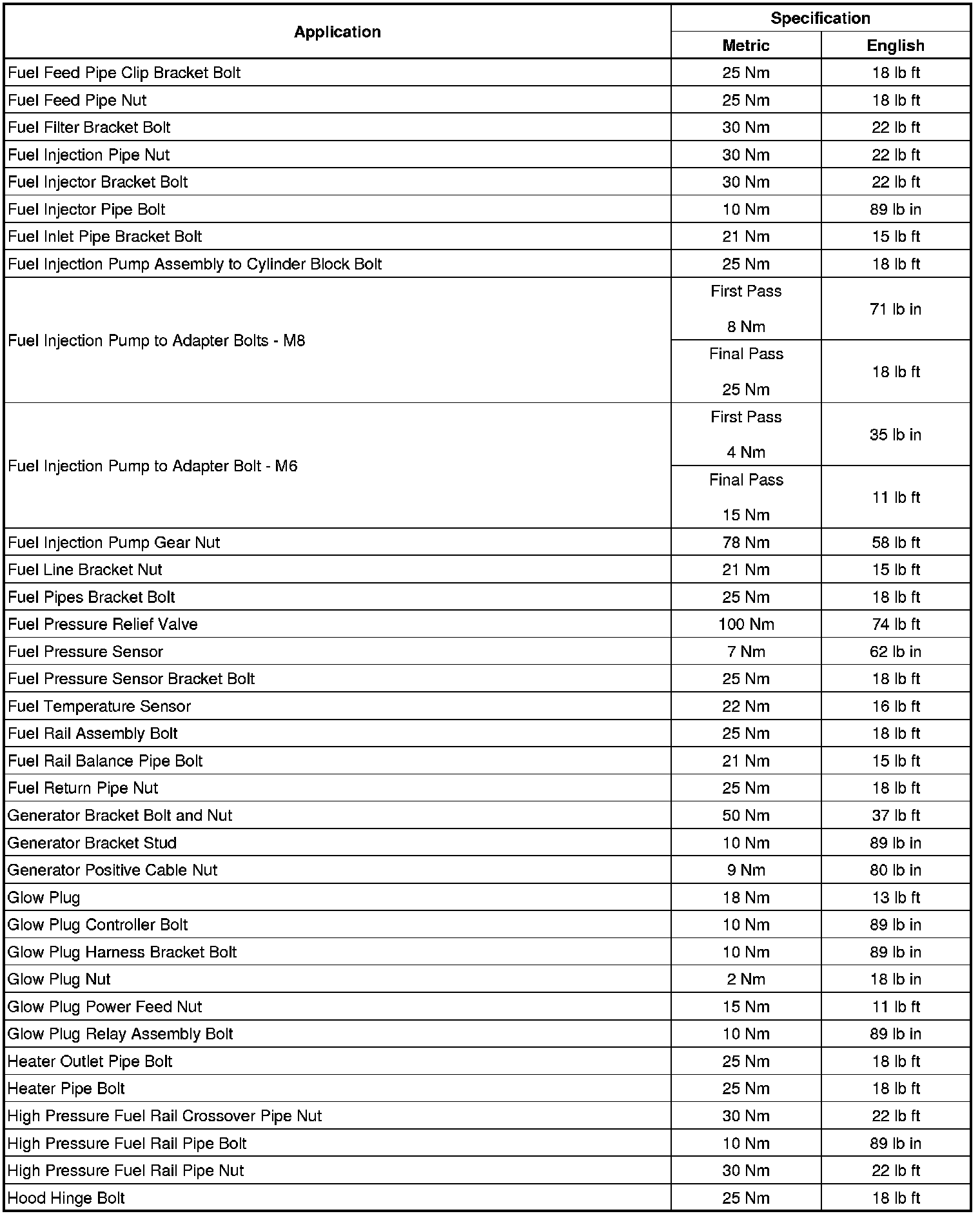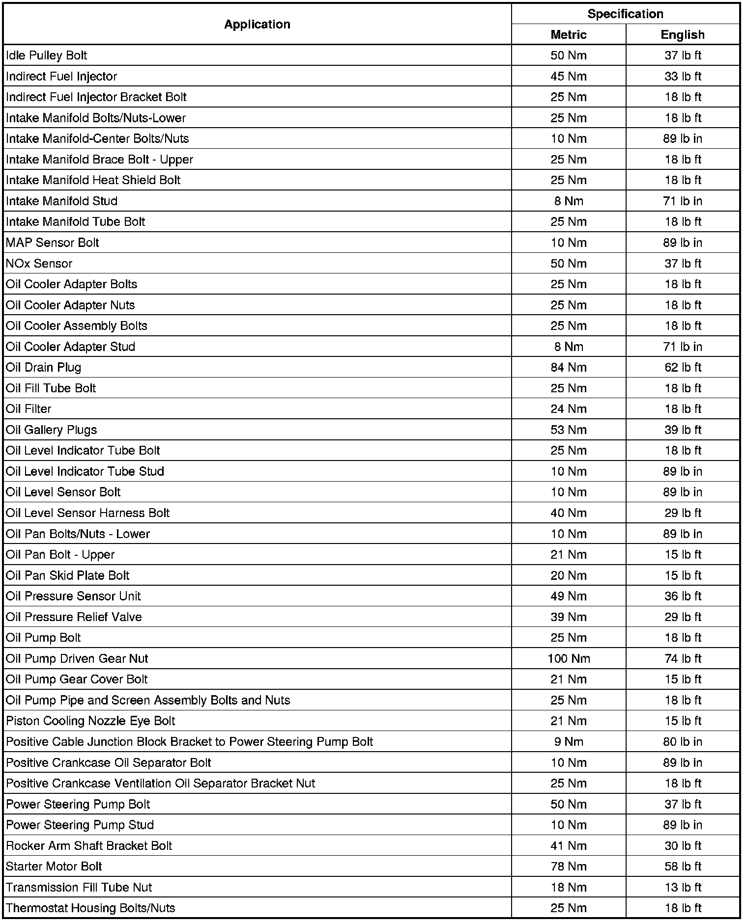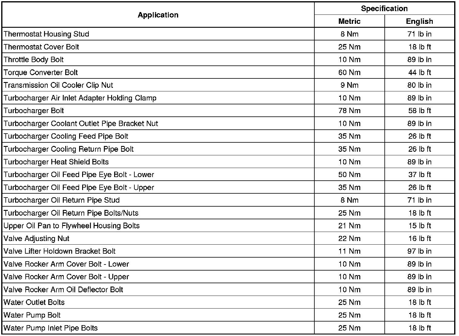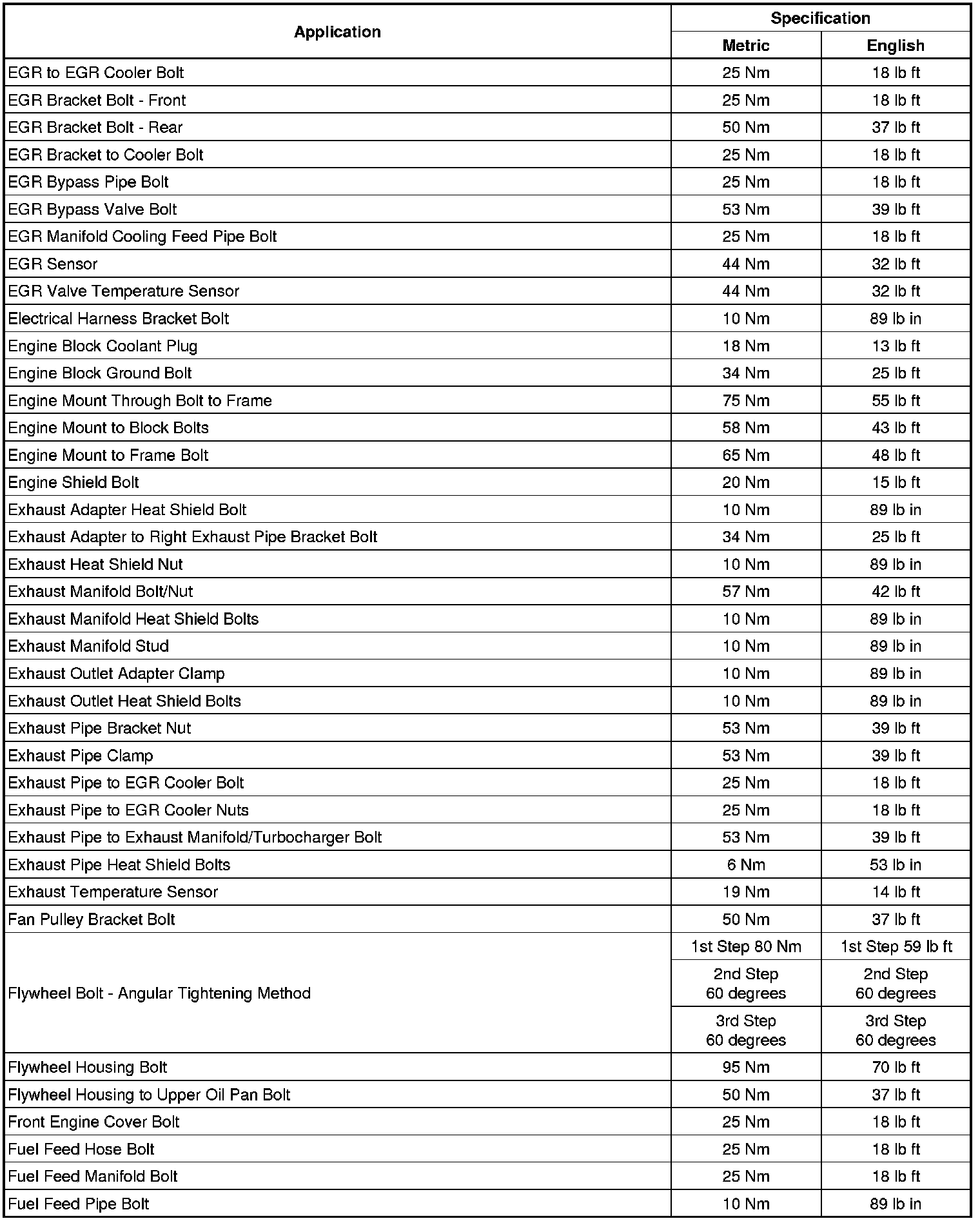 Fastener Tightening Specifications