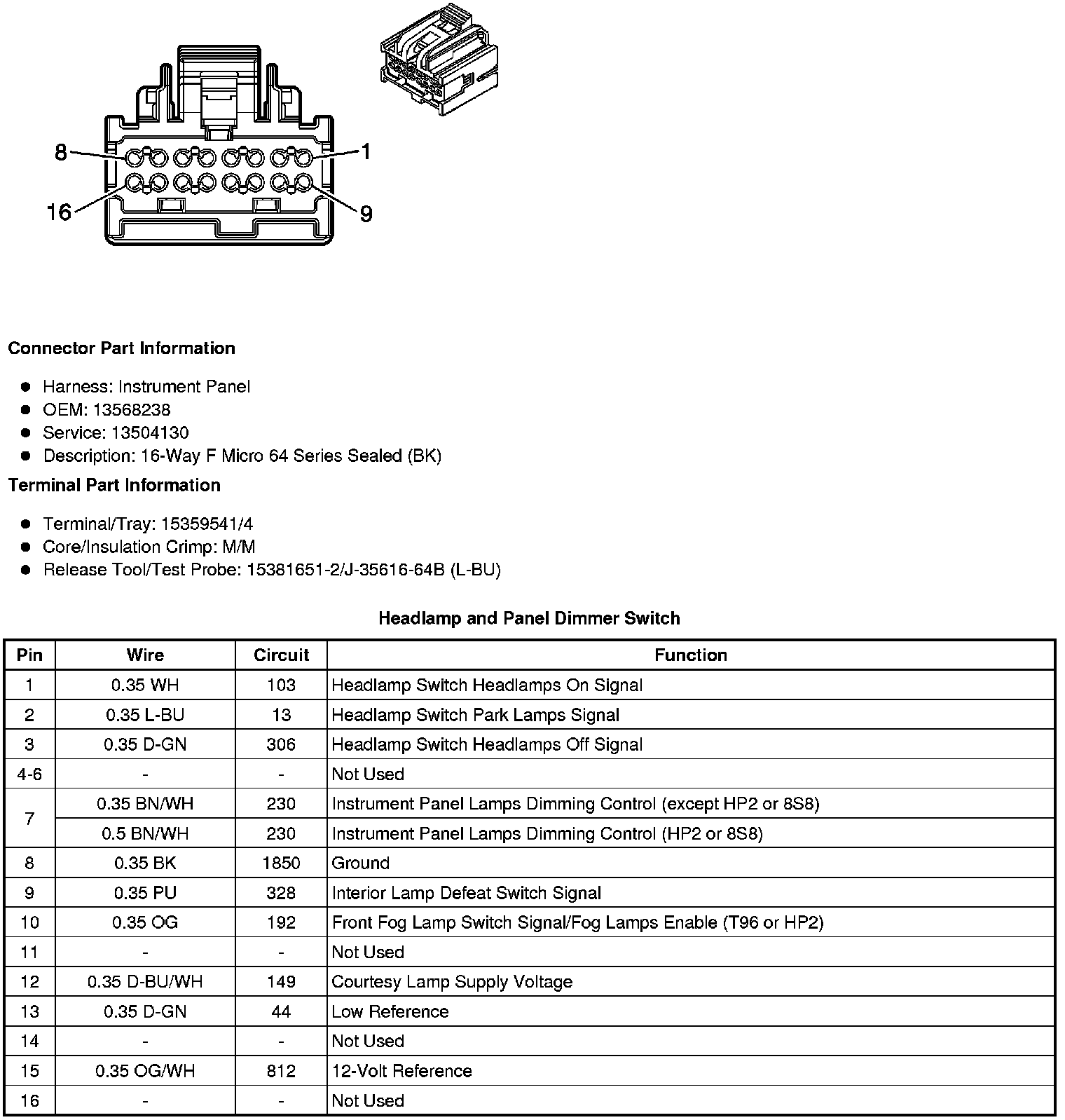 Headlamp and Panel Dimmer Switch