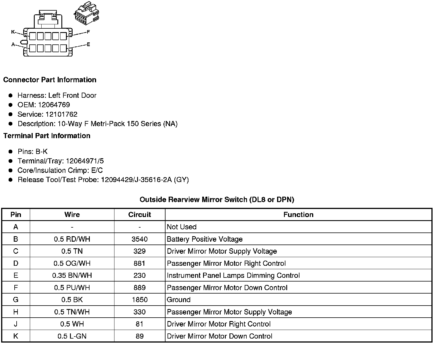 Outside Rearview Mirror Switch (DL8 or DPN)