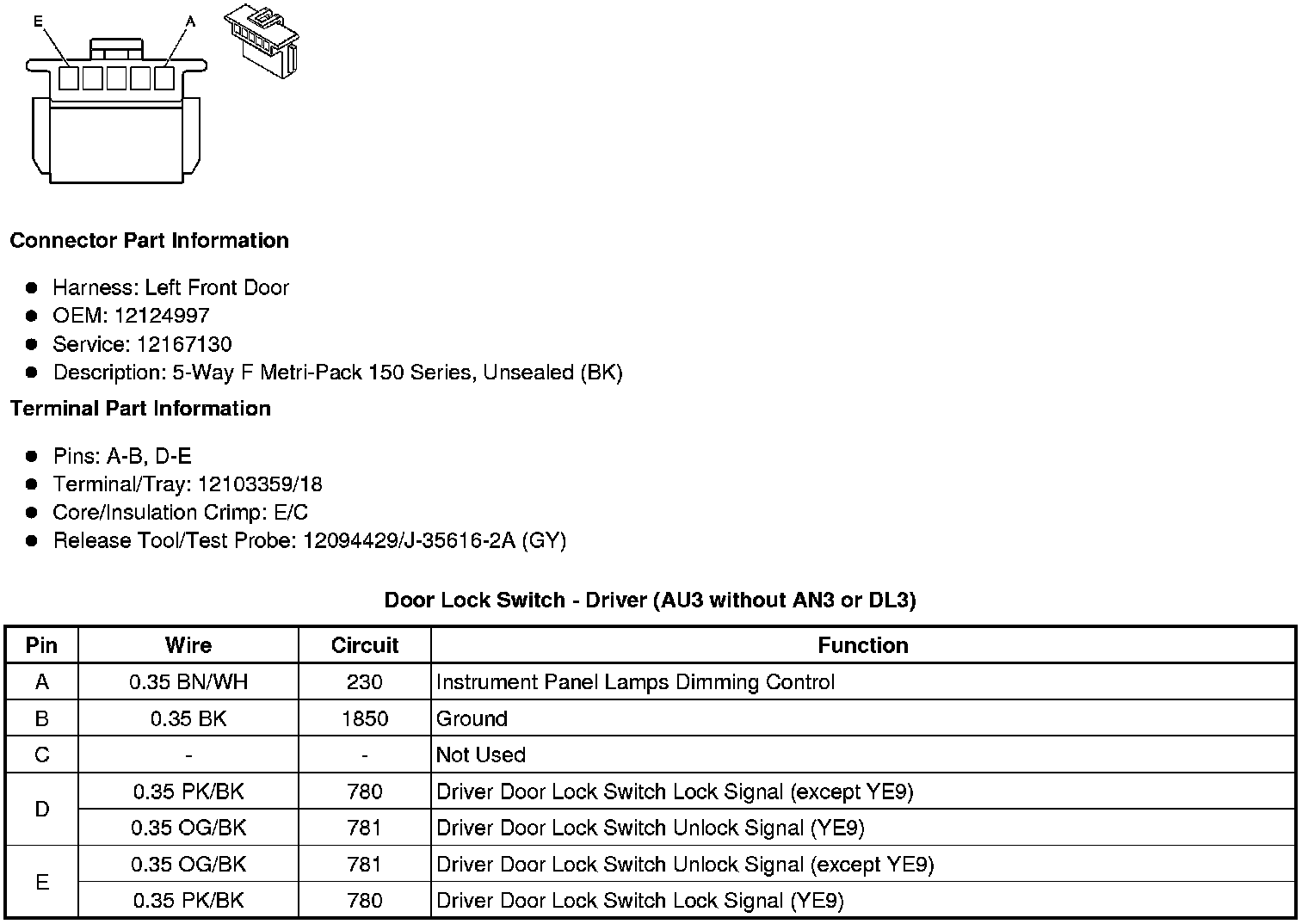 Door Lock Switch - Driver (AU3 without AN3 or DL3)