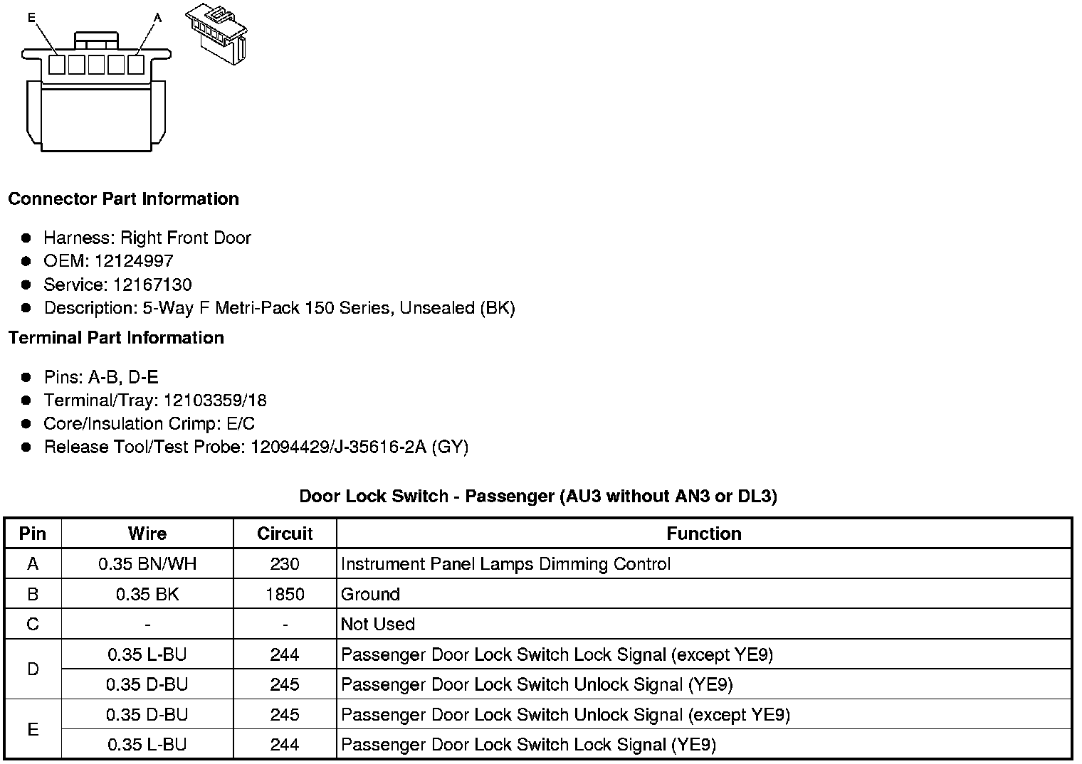 Door Lock Switch - Passenger (AU3 without AN3 or DL3)