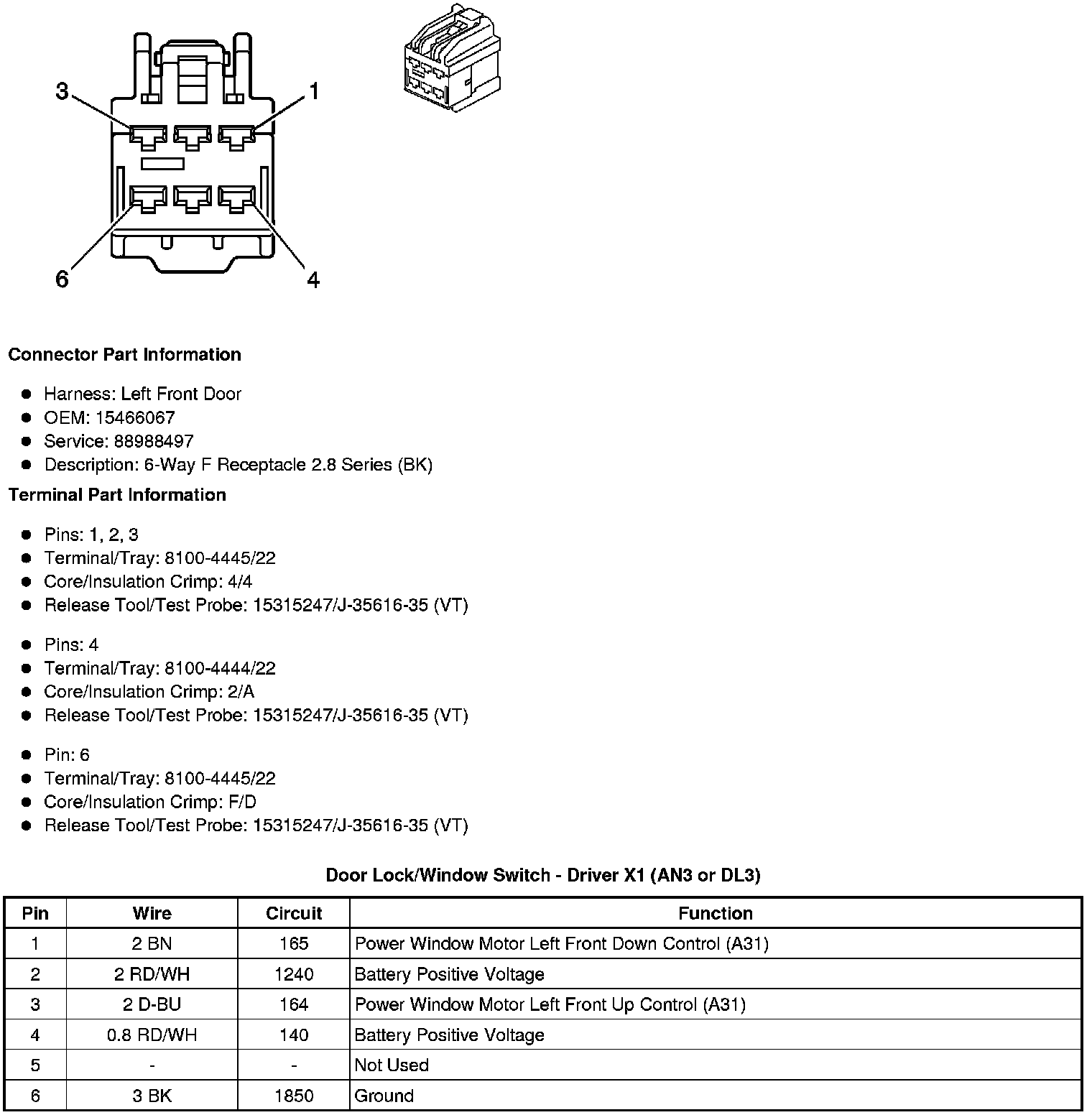 Door Lock/Window Switch - Driver X1 (AN3 or DL3)