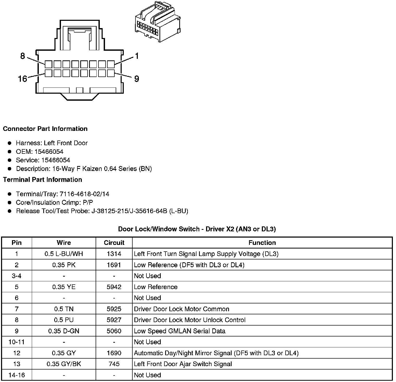 Door Lock/Window Switch - Driver X2 (AN3 or DL3)