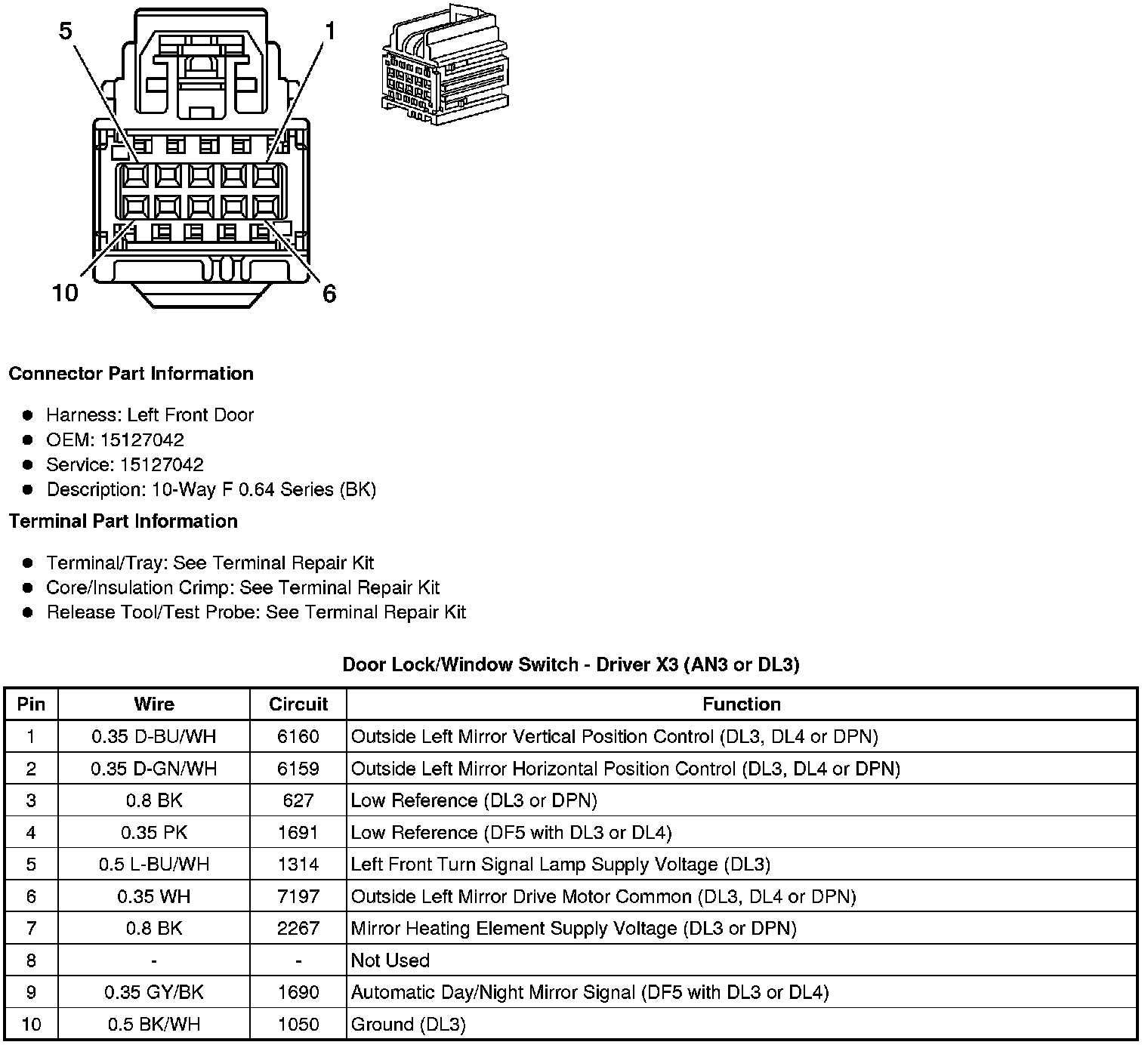 Door Lock/Window Switch - Driver X3 (AN3 or DL3)