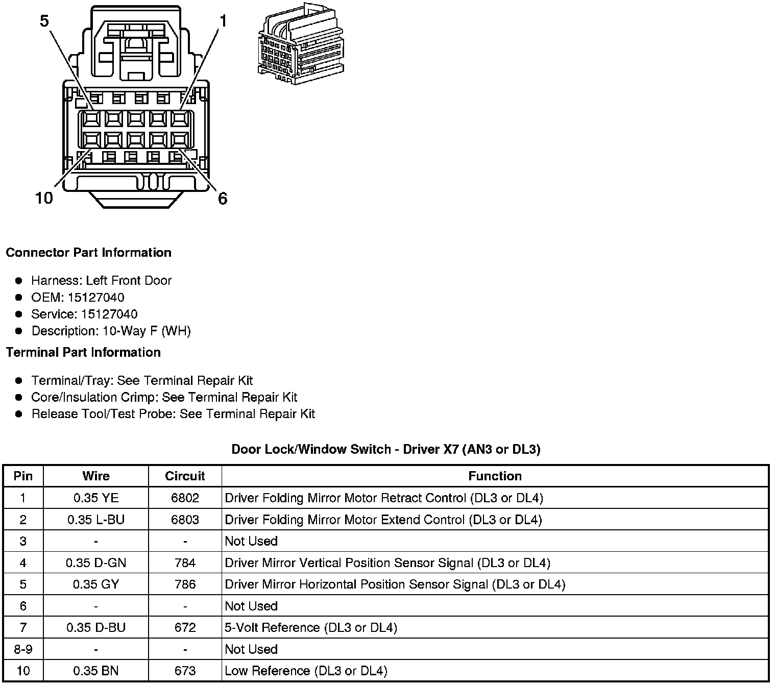 Door Lock/Window Switch - Driver X7 (AN3 or DL3)