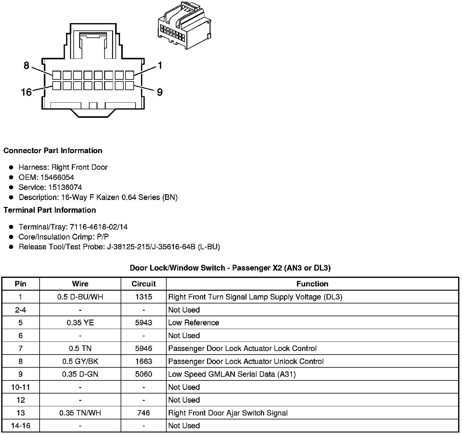Door Lock/Window Switch - Passenger X1 (AN3 or DL3)