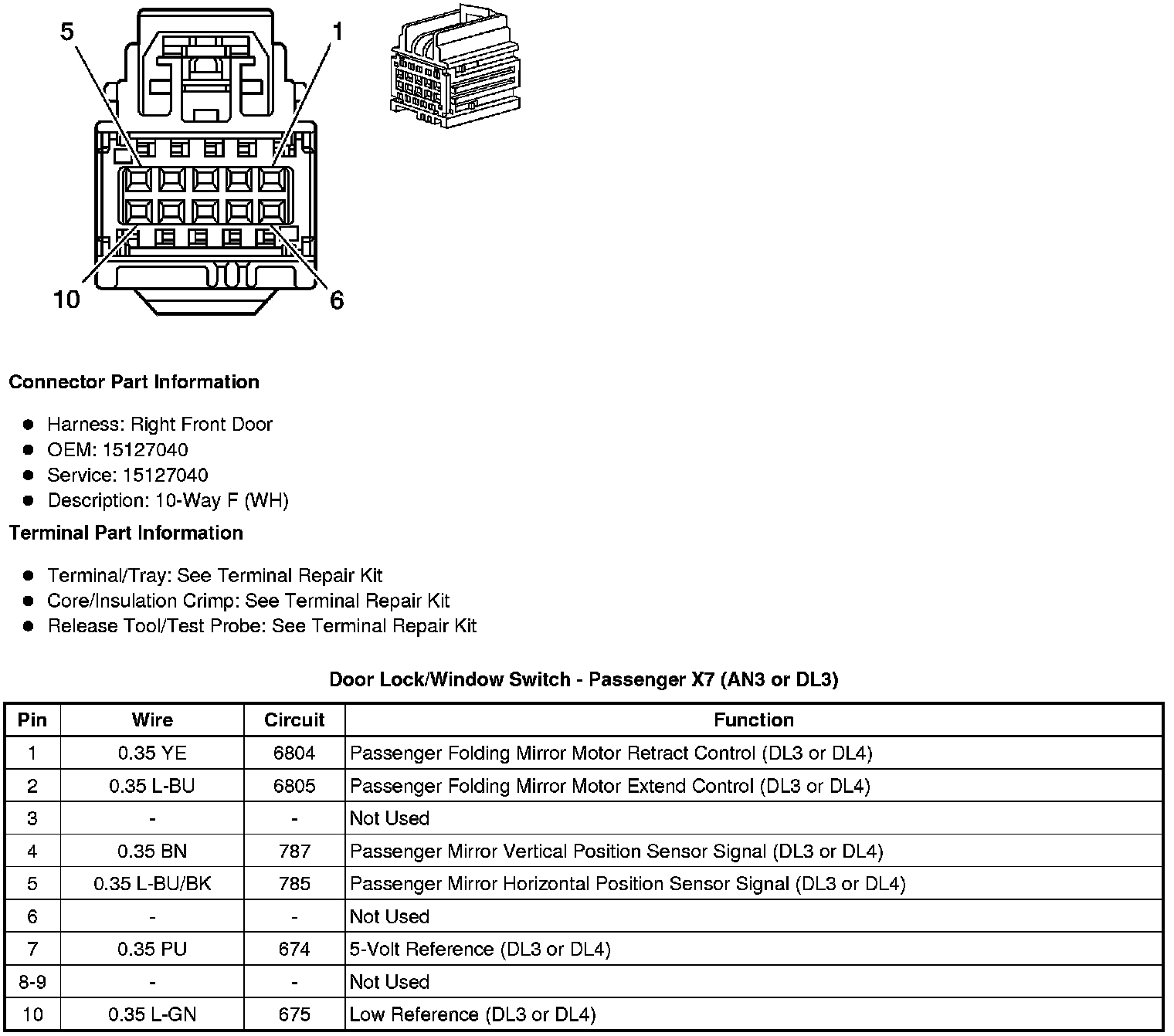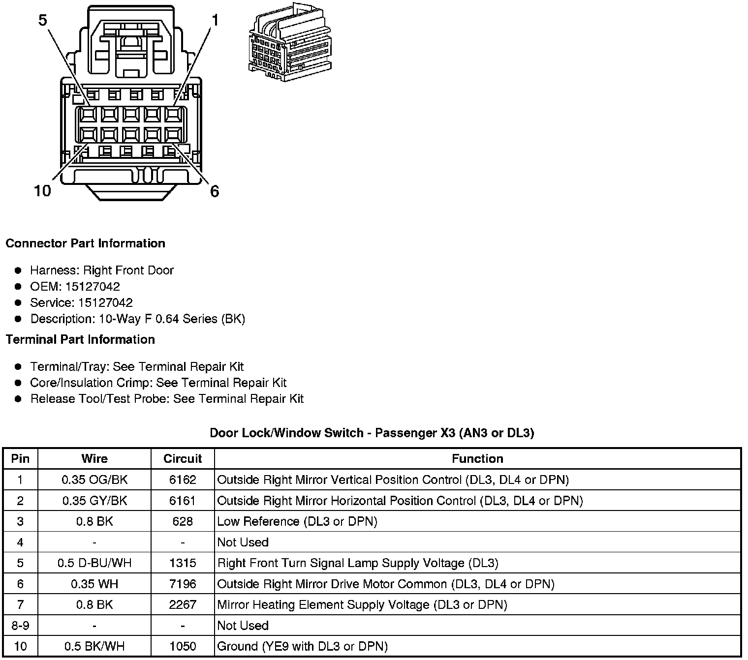 Door Lock/Window Switch - Passenger X3 (AN3 or DL3)