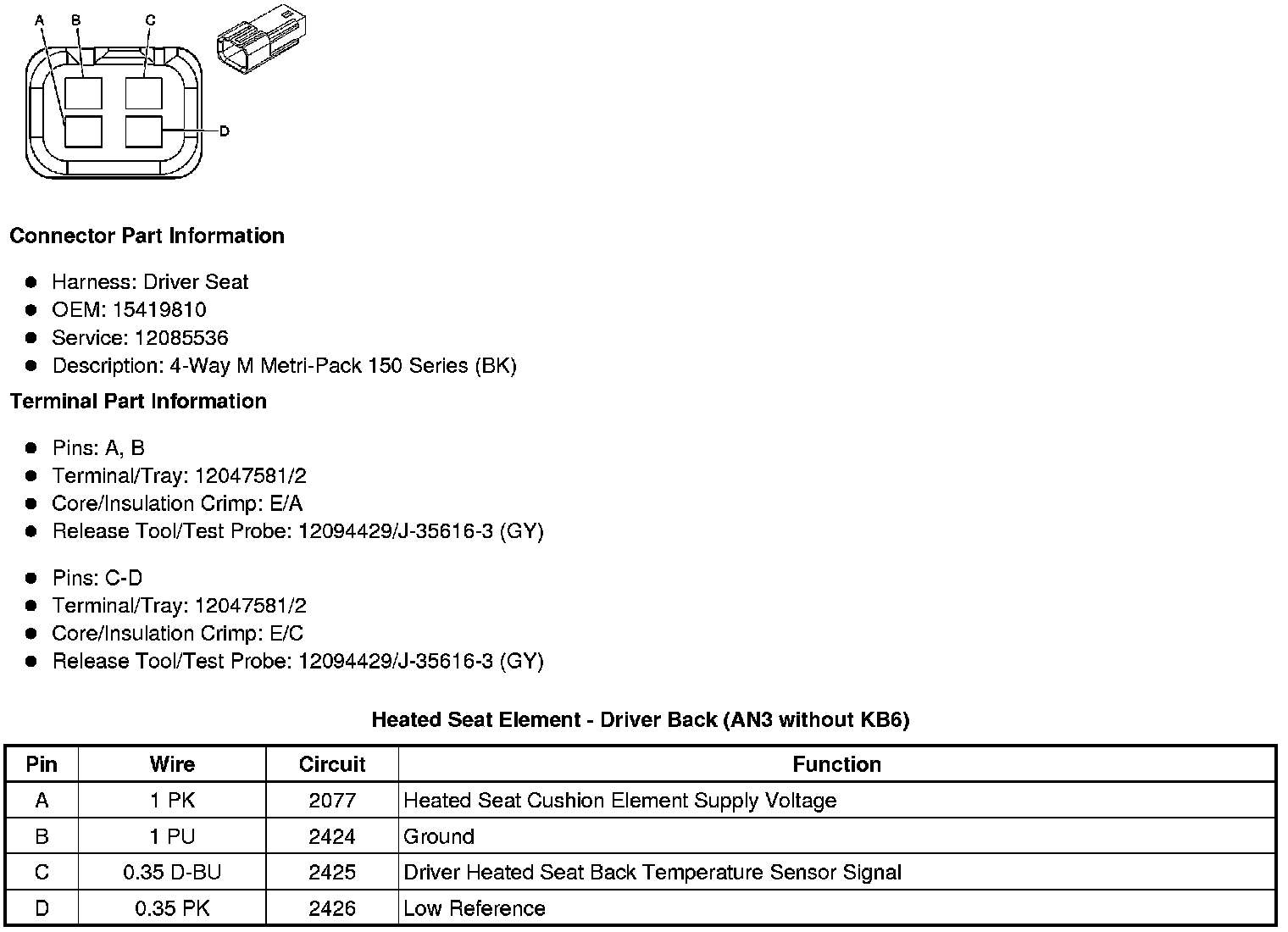 Heated Seat Element - Driver Back (AN3 without KB6)