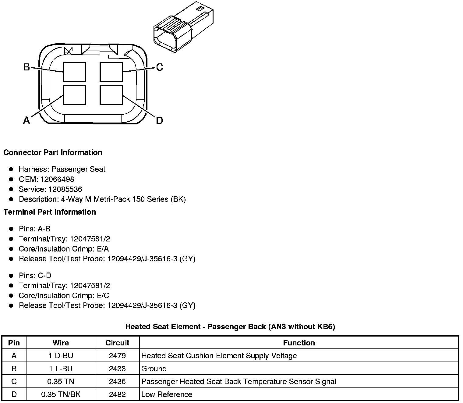 Heated Seat Element - Passenger Back (AN3 without KB6)