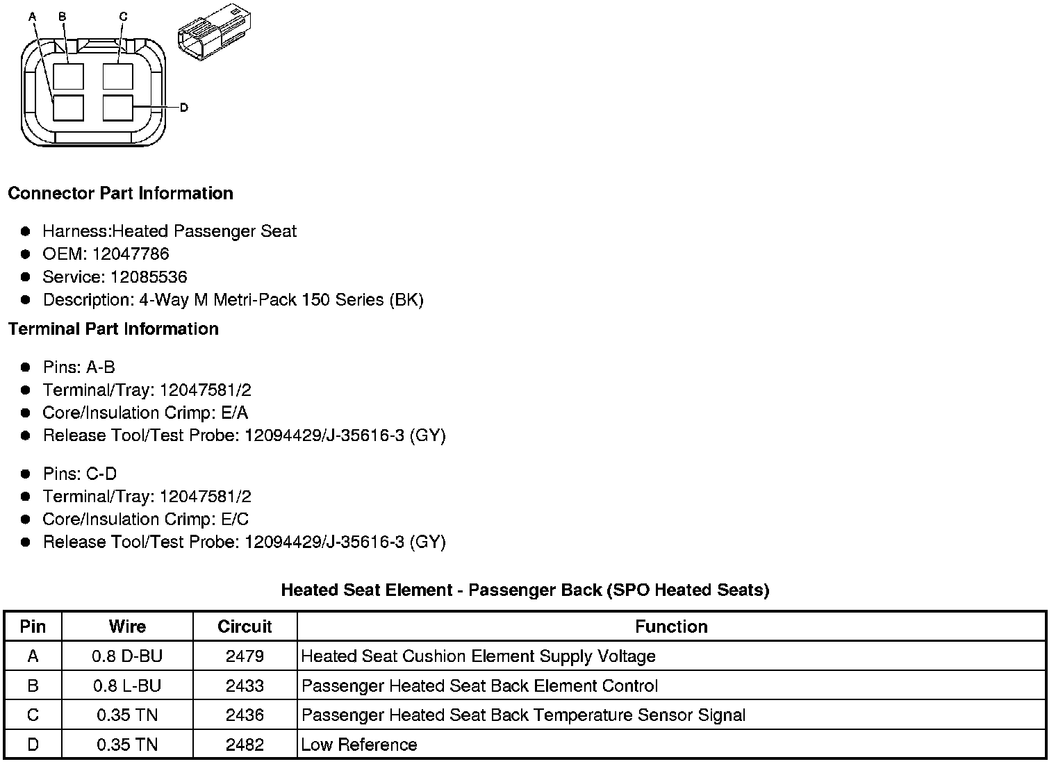 Heated Seat Element - Passenger Back (SPO Heated Seats)