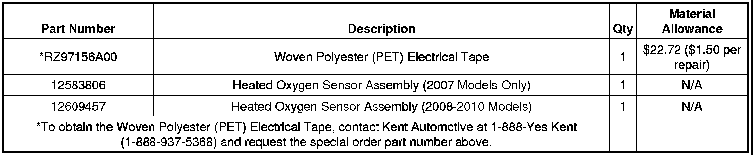 4. Obtain "*Woven Polyester (PET) Electrical Tape" (Special Order P/N RZ97156A00) from Kent Automotive. Refer to Parts Information below.